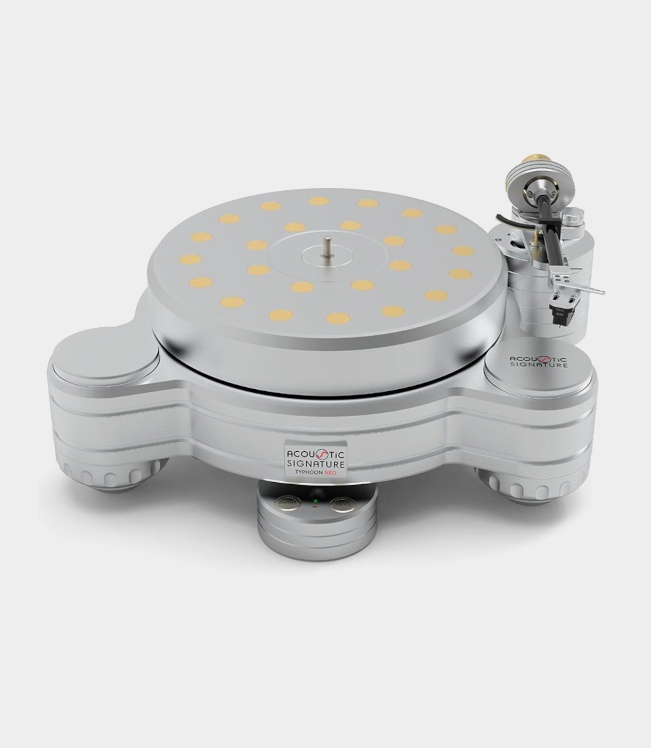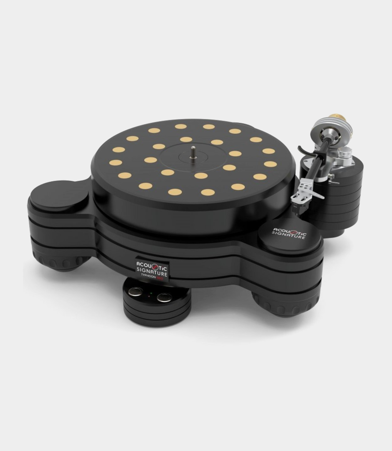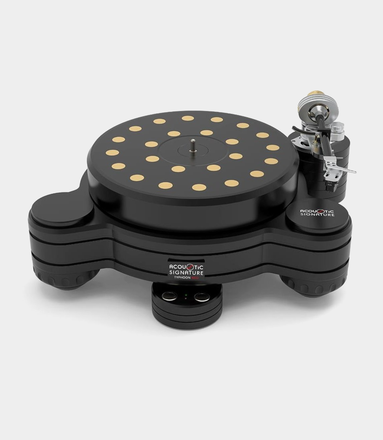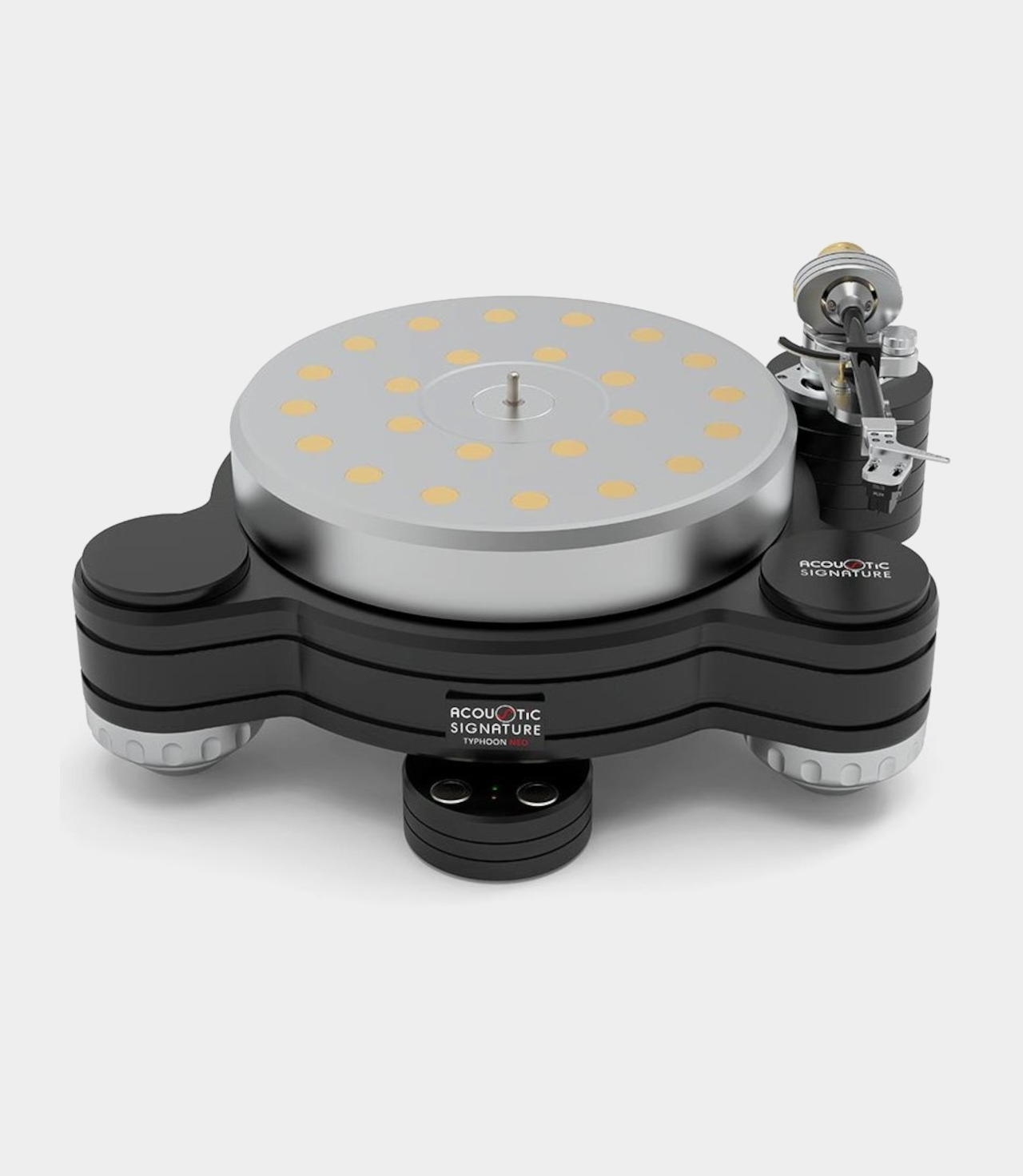 Typhoon NEO nezná téměř žádné kompromisy. Tento gramofon s vysokou hmotností, připravený pro 3 raménka a vybavený druhým nejvyšším stupněm nejnovějšího firemního systému pohonu a technologií šasi, bude produkovat vysoké audiofilské zvukové vlny – v tom nejpozitivnějším slova smyslu. Je nám to naprosto jasné: celkový výkon gramofonu Acoustic Signature Typhoon NEO je na takové úrovni, že překoná i ty nejlepší a mnohem dražší gramofony na světě. Pouze šasi – není osazeno raménkem, bez přenosky.