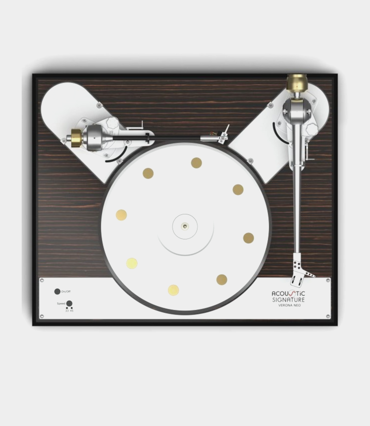 Gramofony s klasickým retro designem jsou stále oblíbenější. Nová Verona NEO je připravena pro až dvě 9 až 12palcová raménka a nabízí tak všechny možnosti, které ambiciózní milovníci hudby hledají. Kromě toho obsahuje všechna technická vylepšení, která mají i jeho ostatní sourozenci z řady NEO, jako je koncept 2 motorového pohonu, ložisko DTD a externí napájecí zdroj DMC-20 s AVC Level 3 a designem CLD, jeho 50 mm silný a 11kg těžký talíř obsahuje 8 tlumičů vibrací. Pouze šasi – není osazeno raménkem, bez přenosky.
