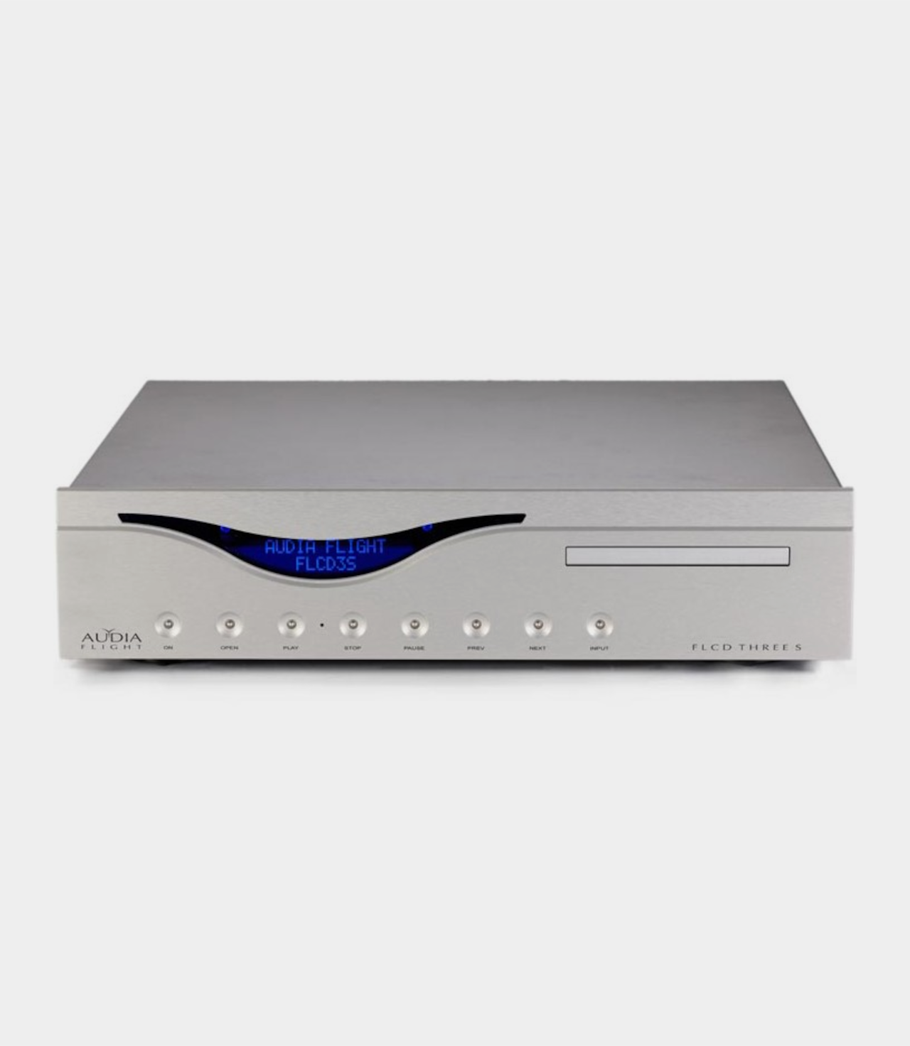 Audia Flight FL CD Three S ztělesňuje moderní CD přehrávač pro milovníky opravdu dobré hudby. Počínaje elegantním italským zevnějškem má FL CD Three S velmi tuhé šasi s 10mm silným hliníkovým předním panelem. V příslušenství najdete také kompaktní, ergonomický dálkový ovladač vyřezaný z masivního hliníku, jehož barva je stejná jako barva předního panelu (k dispozici je stříbrná a černá barva). O všech potřebných informacích vás bude informovat velký modrý OLED displej. Přehrávač využívá CD mechaniku, která je optimalizována pro jednorychlostní přehrávání a není jen další počítačovou mechanikou. Rovněž využívá 32bitové převodníky SABRE ES9026PRO. Kromě toho Audia Flight nabízí výběr ze sedmi digitálních filtrů pro PCM signál (a tedy i pro disk) a používá dva zcela oddělené toroidní transformátory pro analogové a digitální obvody. Na rozdíl od většiny výrobců je analogová výstupní část převodníků napájena taktéž z analogového zdroje. Výstupní sekce je ve stylu Audia Flight tvořena technologií diskrétní proudové zpětné vazby třídy A a jednotka je samozřejmě plně symetrická, takže je k dispozici XLR i RCA analogový výstup. K dispozici je také digitální koaxiální výstup. Jako zvláštní volitelná výbava je k dispozici vstupní modul s pěti digitálními vstupy (2x optický, 1x AES/EBU, 1x koaxiální, 1x USB), kterou lze snadno doinstalovat. Vstup USB umožňuje přehrávat PCM soubory v rozlišení až 32bit/384kHz a DSD 512 a činí tak jednotku použitelnou i jako samostatný D/A převodník. Všechny digitální vstupy jsou galvanicky izolované, aby se zabránilo jakémukoli šumu z digitálních zdrojů.