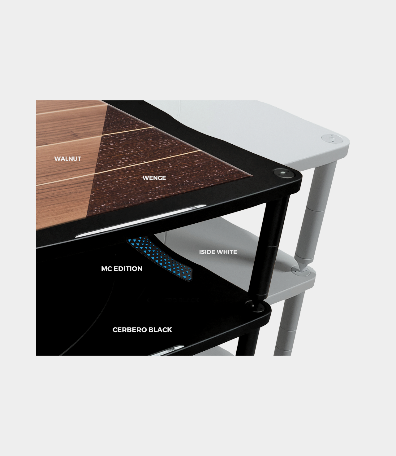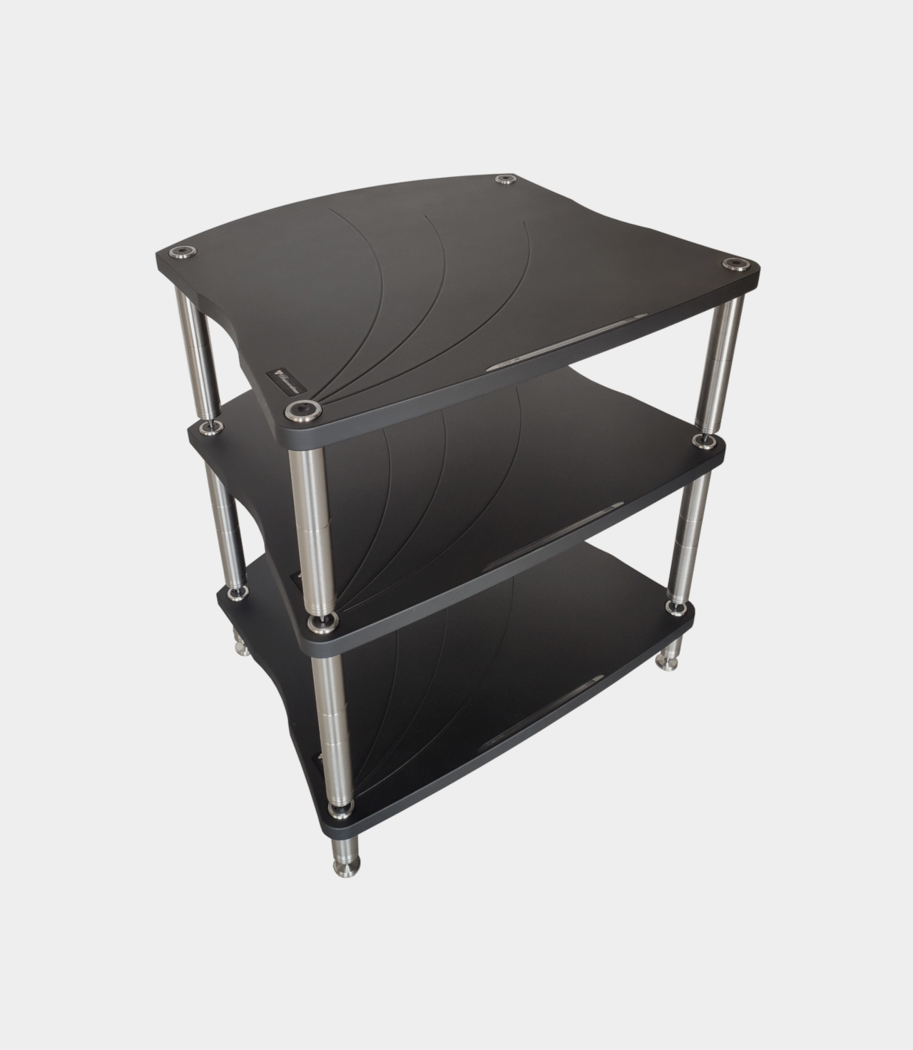 Nejnovější, možná nejočekávanější přírůstek do rodiny stolků Bassocontinuo. Extra velká verze modelu Lyra 2.0, určena pro nadšence s objemnou elektronikou, kteří se chtějí vyhnout středové zadní noze. Modulární a s vysokou nosností: nejlepší koupě, kterou si nemůžete nechat ujít. Čistá výška mezi policemi 90, 140, 190, 240 a 290mm. Tloušťka police 25mm. Nosnost každé police je 70kg. Konstrukce na čtyřech nohách, pevné kovové díly, kompletně modulární – nezávislé police a nastavitelné hroty. Tlumení stolku zajišťují elastomerové podložky mezi nohama a policí, vyrobené z červeného PU 90 sh. Kotouče s hroty oddělené pryží SBR.