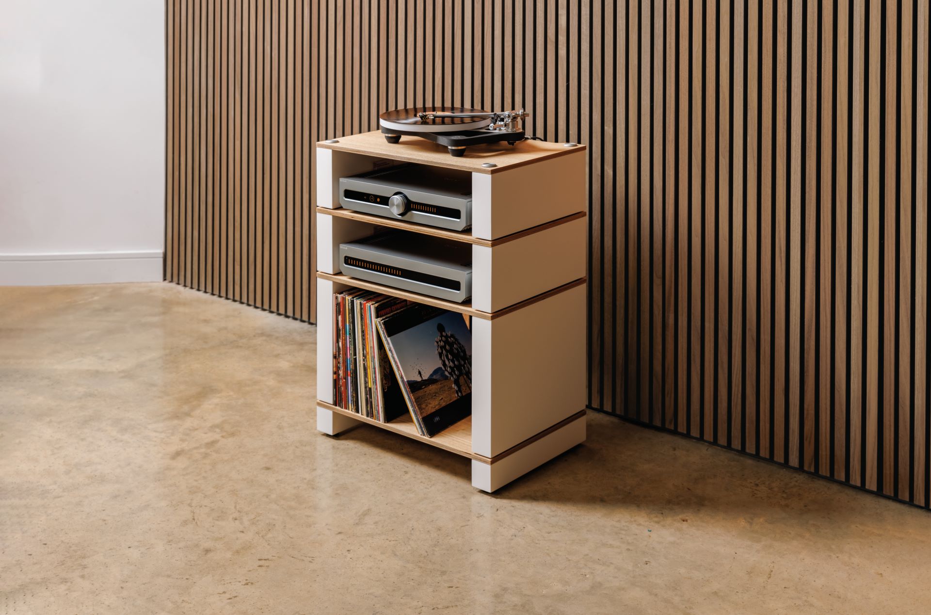 Patro hifi stolku, určené zejména pro uložení LP desek, případně pro opravdu vysoké hifi komponenty. Stax 2G přináší do světa vysoce kvalitního hifi nábytku modernistický design. Jeho chytře vyjádřené akustické detaily jsou odborně zpracovány do čisté a přitažlivě jednoduché estetiky výrobku, který je navržen tak, aby obstál ve zkoušce času v každé domácnosti. Stax 2G je konfigurovatelný v různých výškách polic a je k dispozici ve vybraných moderních povrchových úpravách polic a podpěr. Ať už se na jeho policích objeví jakékoli zařízení, vysoce kvalitní regál Stax 2G nabízí akustickou dokonalost, která zajistí, že pečlivě vybrané elektronice a gramofonu poskytne tu nejlepší možnou platformu pro výkon. Stax 2G poskytuje ideální platformu pro co nejlepší výkon všech komponent. Integrované akustické vlastnosti jsou zabudovány a výběr z několika moderních povrchových úprav umožňuje integraci do jakéhokoli interiéru. Maximální zatížení 40kg.