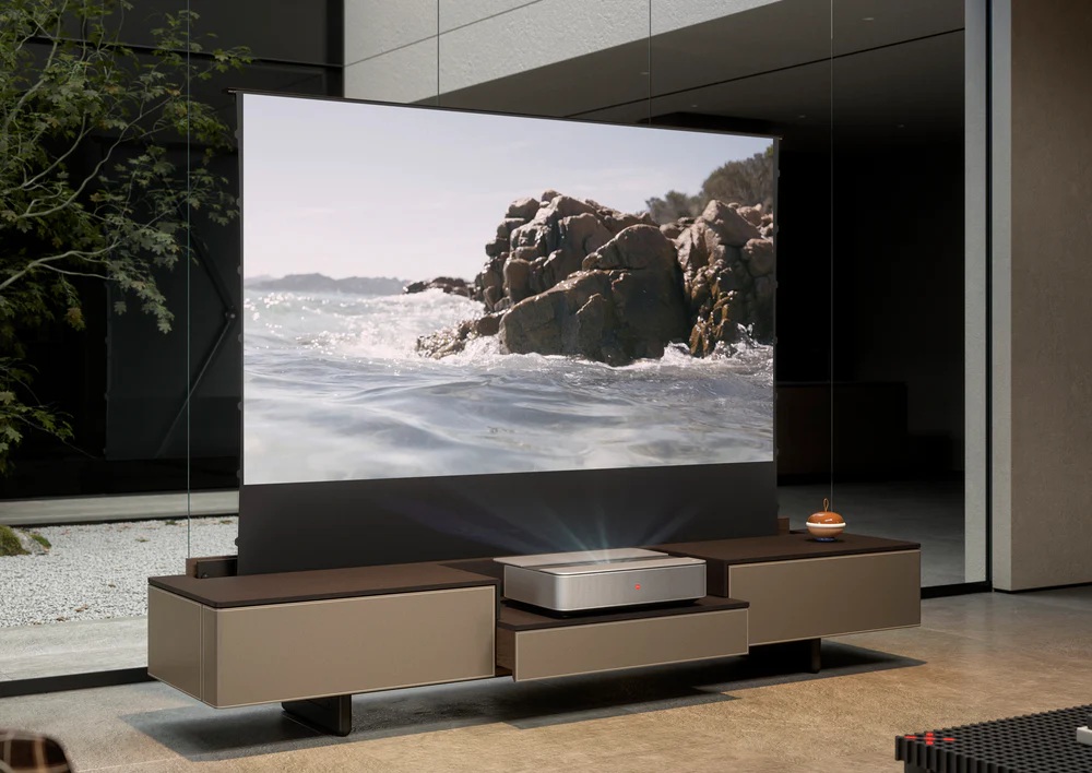 Nová verze podlahového plátna celexon s vysokým kontrastem pro projektory z ultra krátké vzdálenosti. Při vývoji tohoto produktu vzal výrobce v úvahu přání a zpětnou vazbu zákazníků a výrazně vylepšil technické, vnitřní i vnější vlastnosti plátna. Nové podlahové plátno celexon UST High Contrast Floor Scissor Screen – HomeCinema Plus je nyní mnohem lépe připraveno pro integraci do nábytku nebo připevnění k nábytku. V kombinaci s moderním projektorem s ultra krátkou projekční vzdáleností se stává skutečnou laserovou televizí a tím i alternativou ke klasickým televizorům, které mohou při nepoužívání viditelně narušovat váš interiér. Hlavní předností zůstává: Když se nepoužívá, povrch téměř úplně zmizí z dohledu, protože plátno nemusí být namontováno na stěnu nebo strop, ale zmizí do nebo za váš nábytek. To vám umožní realizovat sen o rolovací 80-120″ televizi, která je viditelná pouze při použití.