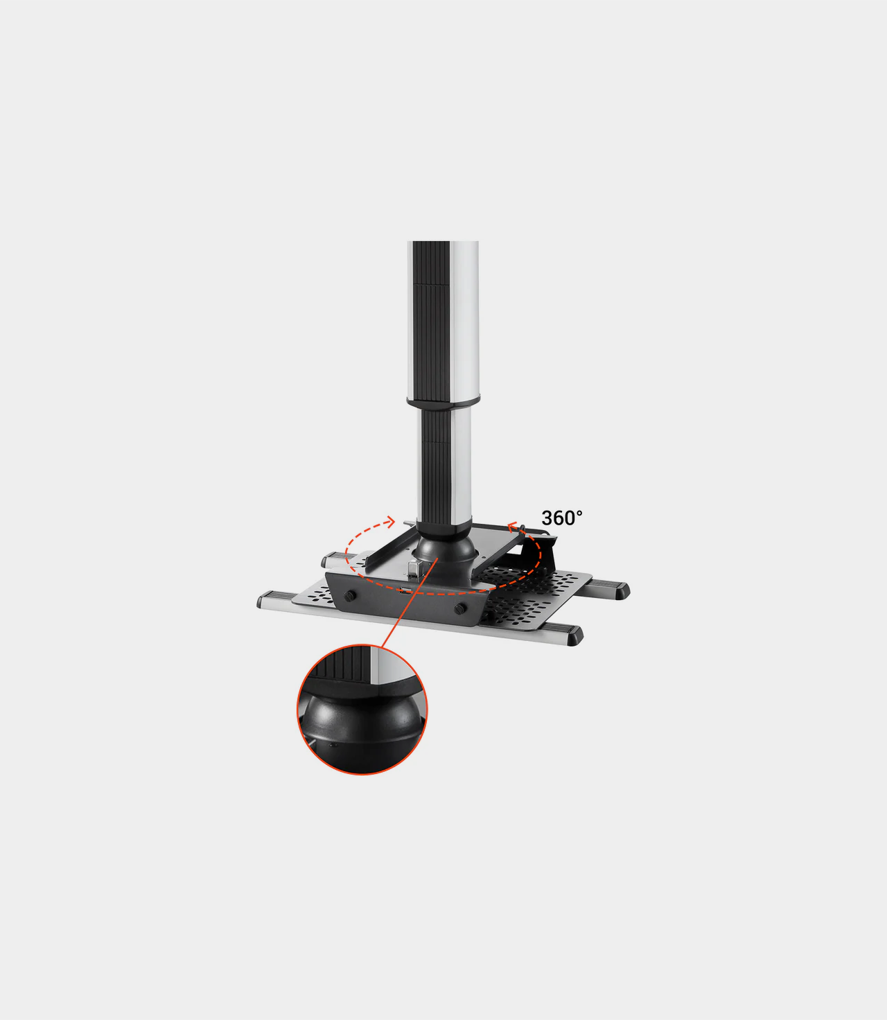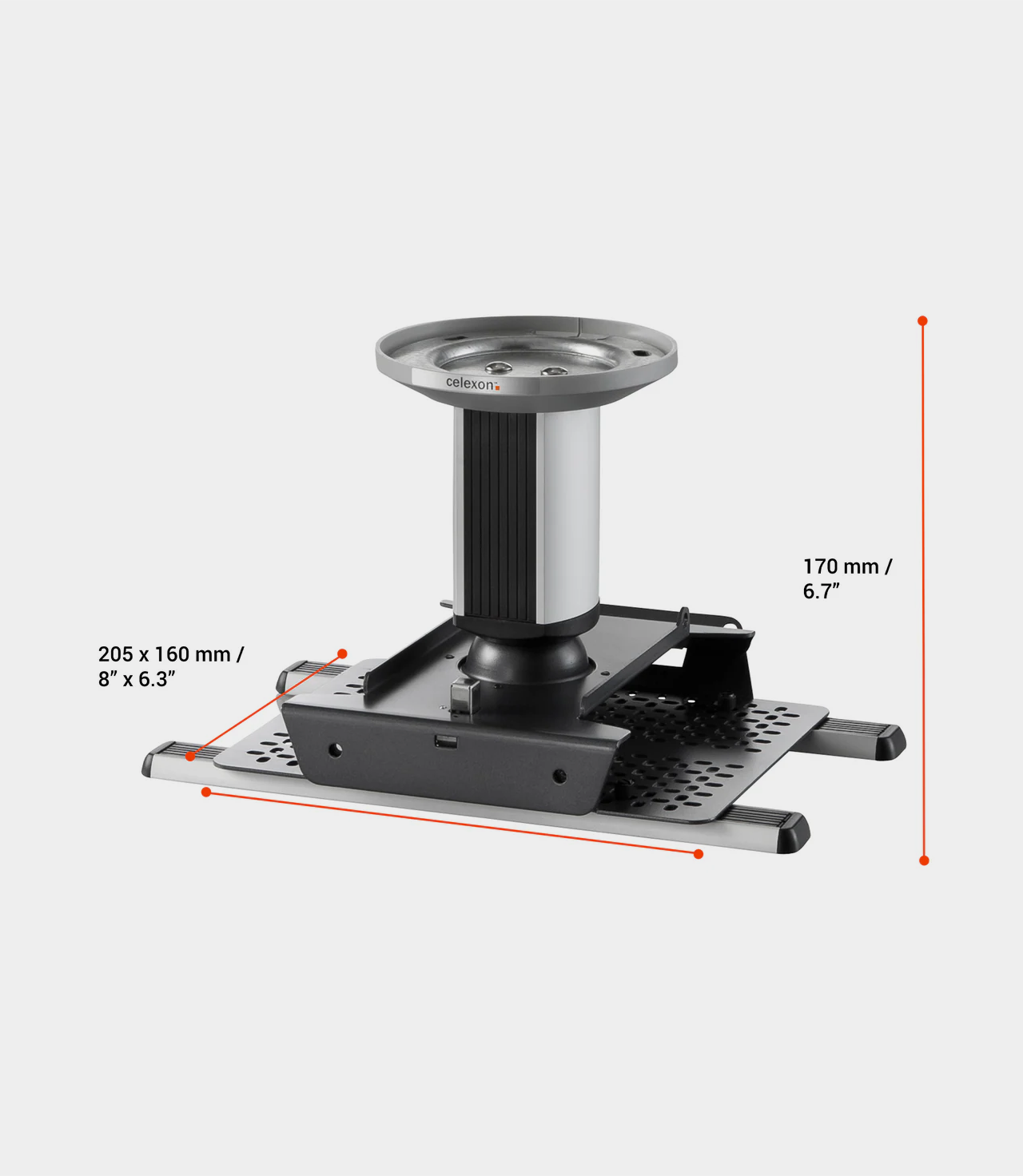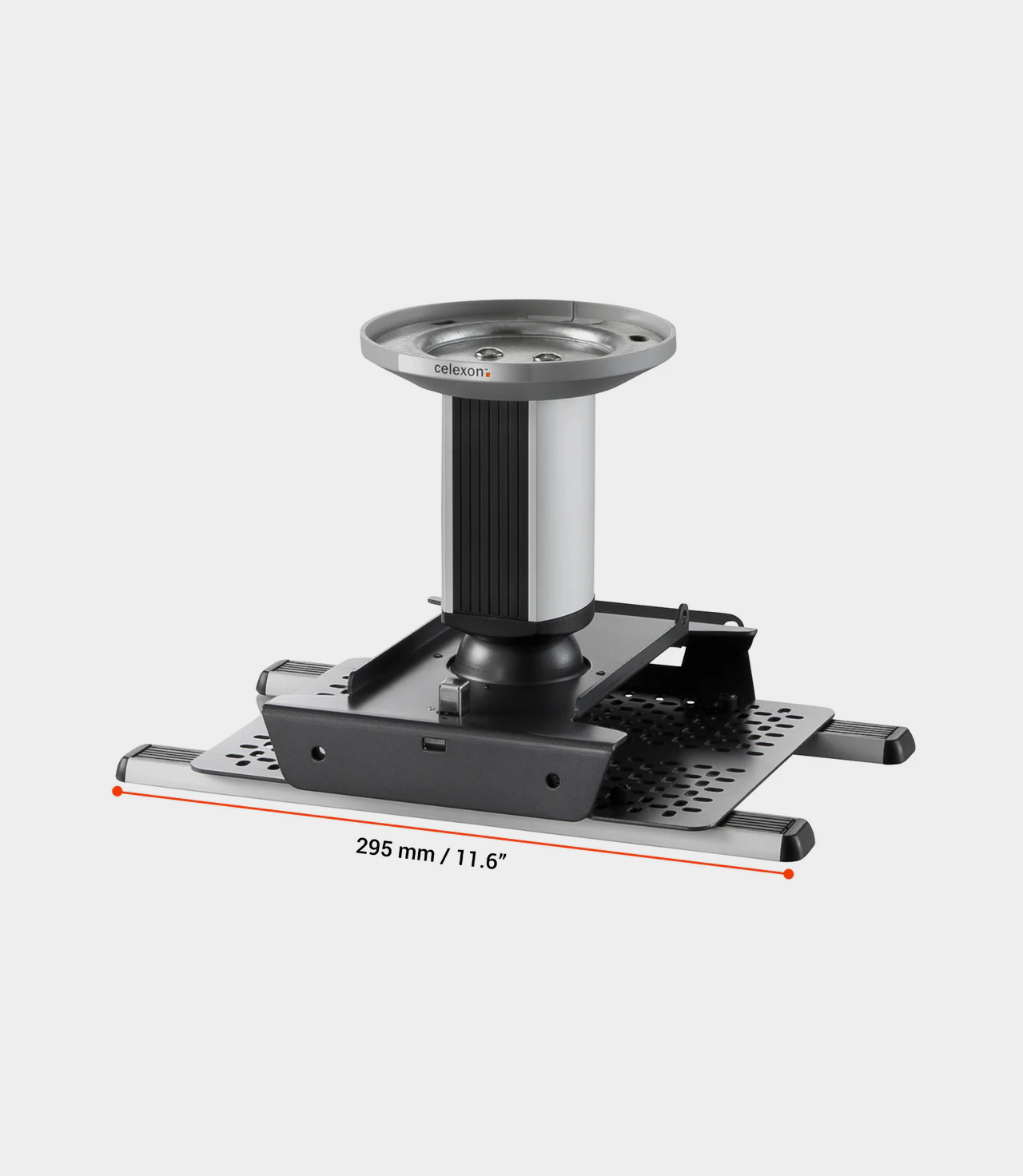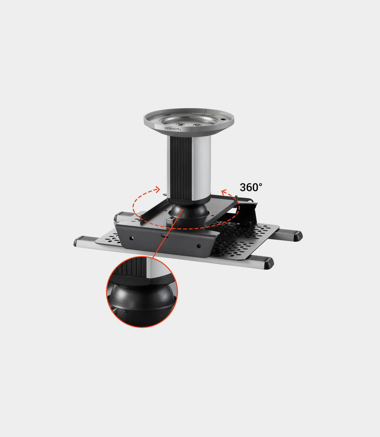 Stropní držáky Multicel ze série celexon Expert jsou nejen kompatibilní s téměř všemi běžnými projektory, ale také zaujmou svým designem a funkčností. Projektor se zde montuje pomocí univerzální projektorové desky, která zajišťuje výrazně lepší stabilitu a konzistentní vyrovnání projektoru. Díky silným prodlužovacím ramenům, která jsou součástí balení, můžete také zvětšit montážní plochu až na rozteč otvorů 25 cm – to umožňuje bezpečné a stabilní upevnění téměř jakéhokoli projektoru. Držák také nabízí možnost uvolnění projektoru z držáku pouhým stisknutím tlačítka. To nejenže výrazně usnadňuje montáž projektoru na držák, ale také nabízí možnost rychlého sejmutí zařízení a v případě potřeby jeho přemístění do bezpečí nebo údržby, např. při výměně lampy nebo filtru. Je také možné použít dva nebo více držáků pro použití projektoru na různých místech – bez nářadí a bez námahy s instalací. Tento držák nabízí variantu s fixní tyčí, kdy je vzdálenost držáku od stropu 15cm nebo s teleskopickou tyčí s variabilní vzdáleností od stropu 60 – 110cm. Maximální nosnost 25kg.