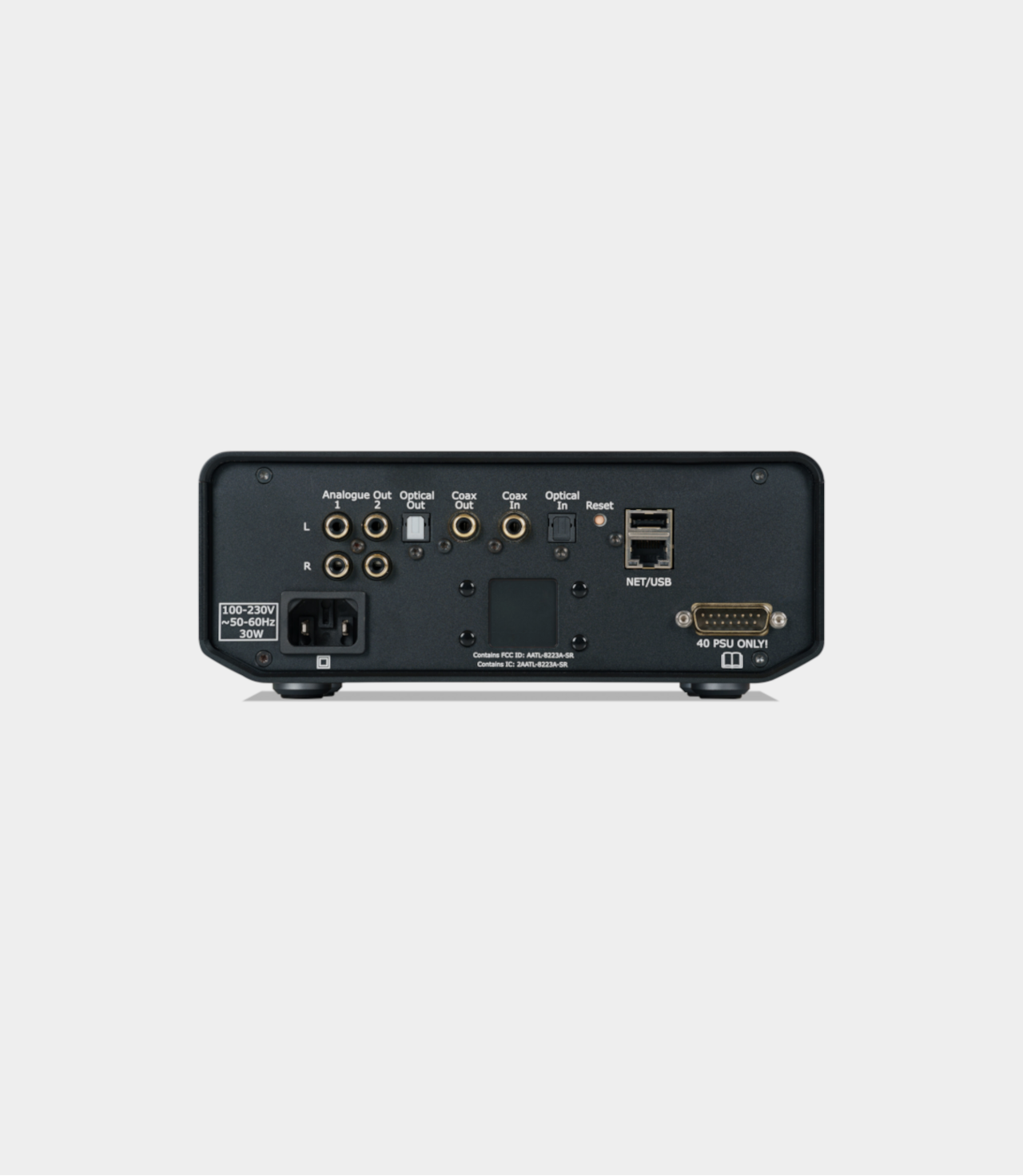 Všechny produkty řady 40 poskytují možnost připojení externího zdroje napájení 40 PSU prostřednictvím jednoduchého kabelu s 15pinovým konektorem na zadním panelu obou produktů. Zdroj 40 PSU, který obsahuje vlastní vestavěný mikroprocesor, komunikuje přímo s hostitelským produktem a konzistentně poskytuje nejlepší konfiguraci napájení z celého rozsahu výstupních úrovní napětí. Všechna výstupní napětí ze zdroje 40 PSU jsou digitálně řízena interně, takže jsou extrémně stabilní a prakticky bez šumu.