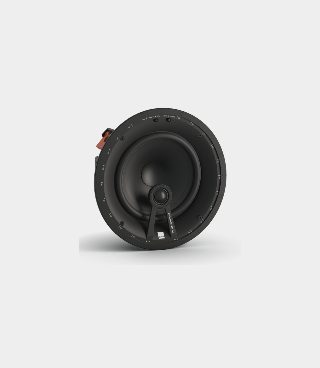 U modelu Phantom E-80 jde především o velký zvuk. Využívá každou část svého 20cm wooferu a naplní zvukem i velmi velké místnosti, přičemž má basy pod kontrolou. Díky tomu je ideální jako hlavní reproduktory v obývacím pokoji, ať už jde o stereofonní sestavu, nebo prostorový systém domácího kina. DALI Phantom E-80 je navržen pro optimální použití ve stropě, ale funguje i při montáži do stěny. Jde o skutečný hi-fi zvuk, všestrannost a flexibilitu. Díky konstrukci kompaktních rozměrů a snadno použitelnému systému polohování pomocí kompasu je umístění reproduktoru pro optimální zvukový zážitek velmi jednoduché. Dva diskrétní přepínače nabízejí možnosti nastavení zvuku, aby posluchač získal z reproduktorů maximum, a to i v místnostech, kde je to tradičně obtížné. Nakloněný woofer a mírně uprostřed umístěný měkký kopulovitý tweeter se frekvenčně elegantně prolínají a vytvářejí bohatě detailní a jasnou zvukovou scénu. Polypropylenová membrána je odolnější vůči vlhkosti než tradiční materiál membrány DALI – dřevovlákno, díky čemuž je reproduktor Phantom E-80 flexibilní, pokud jde o umístění v krytých venkovních prostorách a koupelnách.