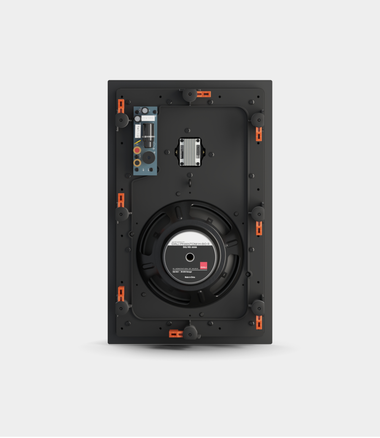 DALI PHANTOM H-80 R je obdélníková verze reproduktoru PHANTOM H-80. Je vybaven výkonným 20cm wooferem, má stejně detailní zvuk, stejně působivé vlastnosti a stejně skvělou rovnováhu mezi velikostí a výkonem – ale má tradičnější, obdélníkový tvar. PHANTOM H-80 R zaplní místnost velkou zvukovou scénou a přirozenou dynamikou. Je alternativou k tradičním regálovým reproduktorům a malým podlahovým reproduktorům a nabízí stejnou úroveň hudebního výkonu v diskrétnější podobě. Minimalizovaná difrakce okrajů skříně reproduktoru PHANTOM H-80 R totiž zajišťuje hladké středy a lepší časové sladění s basy. Umístění reproduktoru ve stěně spíše než v její blízkosti také zlepšuje impulzní odezvu, zatímco zvýšené akustické zatížení umožňuje reproduktoru PHANTOM H-80 R pracovat méně tvrdě při nízkých frekvencích. Nízkorezonanční konstrukce přepážky z MDF poskytuje pevnou základnu pro měniče a snižuje zabarvení zvuku. Tlusté a tuhé vnější obložení přepážky také zajišťuje lepší spojení se stěnou, čímž ještě více snižuje rezonanci a minimalizuje zkreslení.