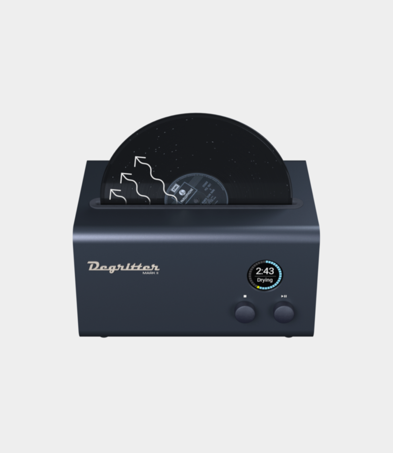 Čisticí voda je během mytí čerpána přes vyměnitelný filtr. Kontinuální filtrace zabraňuje tomu, aby se odstraněné nečistoty vrátily zpět na desku. Degritter monitoruje teplotu vody a zabraňuje jejímu zvýšení na úroveň, která by mohla poškodit vinylové desky. Vysoké teploty jsou regulovány automatickými chladicími cykly. Desky se následně suší proudem filtrovaného vzduchu. Dobu sušení i rychlost ventilátoru lze nastavit tak, aby byla udržována nízká hladina hluku a aby nedocházelo k hromadění statické elektřiny.