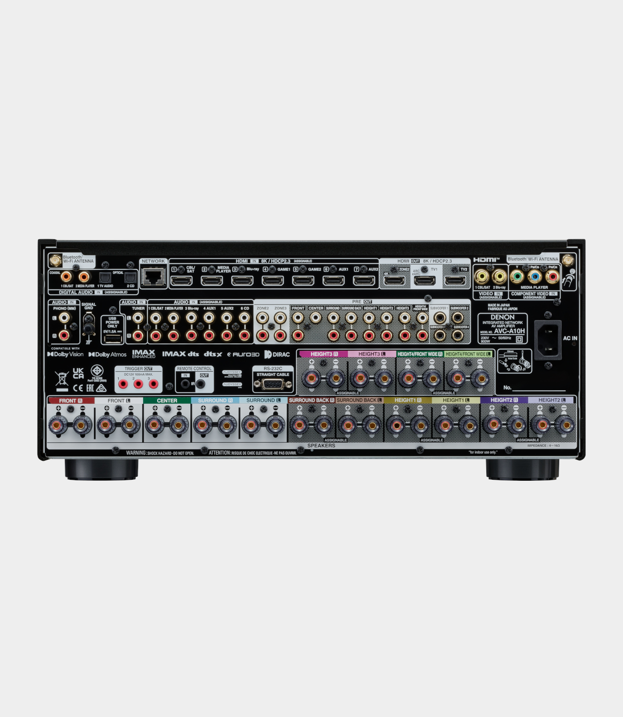 Rozehrajte svoje vysněné domácí kino s Denon AVC-A10H. Prémiový výkon se snoubí s bezprecedentní všestranností. Díky robustnímu 13.4kanálovému zesilovači zesílí signál až pro 13 reproduktorů a 4 subwoofery s výkonem 150 wattů na kanál. Devět dvoukanálových audiofilních DA převodníků maximalizuje rozlišení pro všech 17 kanálů. Prémiové pozlacené reproduktorové terminály a pevné třívrstvé šasi chrání před vibracemi a rušením. Užijte si pohlcující formáty jako Dolby Atmos, DTS:X, IMAX Enhanced a AURO-3D, ohromující 8K obraz a zvuk v audiofilské kvalitě. Pro maximální komfort streamování vaší oblíbené hudby z internetu nebo úložných zařízení je přítomna technologie HEOS Bult-in. Vyrobeno v Japonsku pro bezkonkurenční dokonalost.
