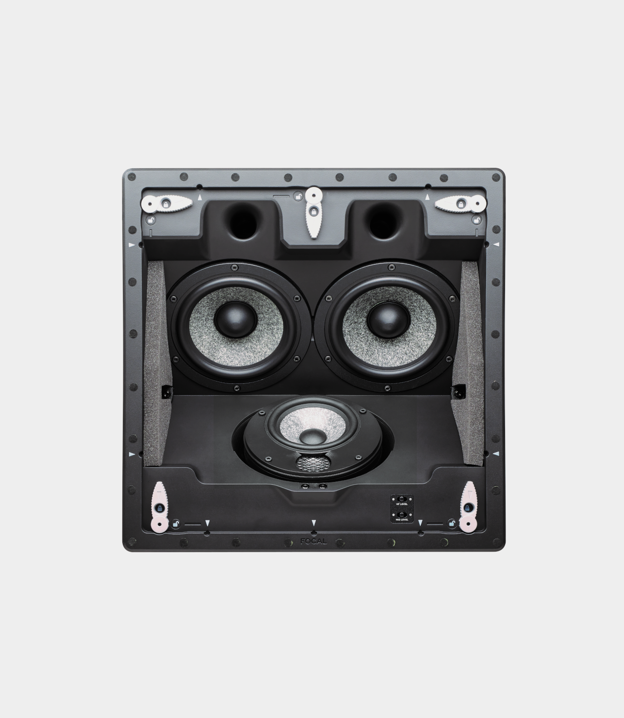 High-end vestavný reproduktor s třípásmovou, basreflexovou konstrukcí. Je vybaven exkluzivními technologiemi Focal, jako je sendičová W membrána středobasového a basového měniče nebo invertovaná beryliová výšková membrána. Na tomto vestavném reproduktoru lze, pro zachování nejvyšší kvality reprodukce, středovou část otočit o 90° pro použití jako levý, středový nebo pravý reproduktor, a to jak pro přední tak i zadní surroundové kanály. Úrovně výškového a středového měniče lze nastavit tak, aby se přizpůsobily akustice místnosti: výsledkem bude nejlepší výkon bez ohledu okolí. Reproduktor je dodáván se čtvercovou krycí mřížkou, připravenou pro nabarvení.