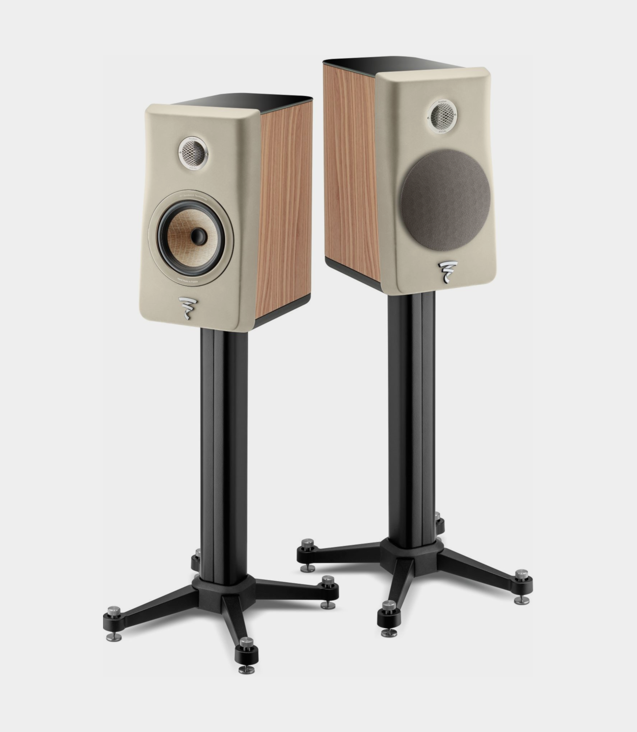 Stojany pro regálové reprosoustavy Focal Kanta. Díky výškově nastavitelným hrotům lze celkovou výšku stojanu změnit v rozmezí 615 mm – 641 mm.