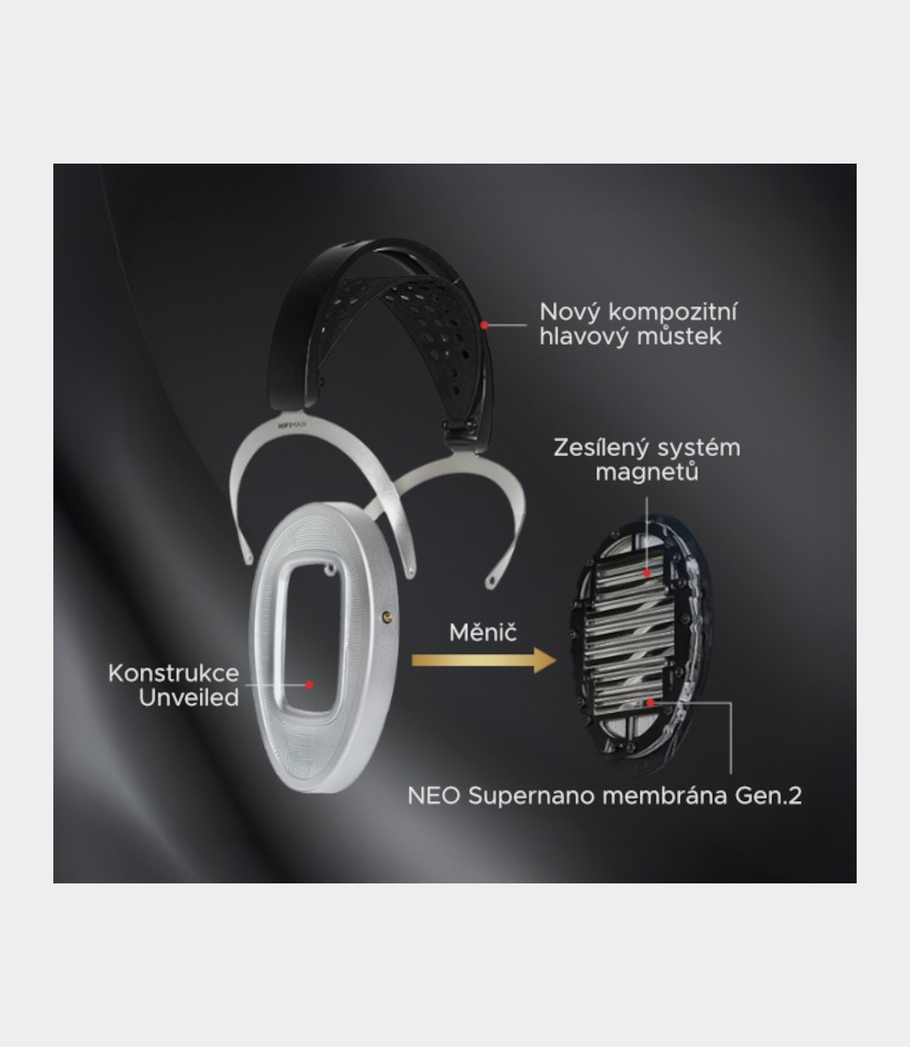 High-end otevřená magnetoplanární sluchátka Hifiman Ananda Unveiled posouvají hranice populární rodiny Ananda na zcela novou úroveň. Přinášejí revoluční konstrukci Unveiled, známou z vlajkových modelů Susvara a HE1000, která kompletně odstraňuje mřížky, eliminuje nežádoucí odrazy a umožňuje zvuku proudit volně a přirozeně. Sluchátka jsou nabita nejnovějšími technologiemi včetně ultratenké membrány Neo Supernano 2. generace a zesíleným magnetickým systémem pro maximální dynamiku a kontrolu nad zvukem. Vylepšení se dočkal také hlavový most, který prošel redukcí hmotnosti a celkovou úpravou ergonomie pro ještě komfortnější zážitek z poslechu. Užijte si otevřený, prostorově bohatý zvuk Hifiman navržený pro skutečné milovníky hudby.
