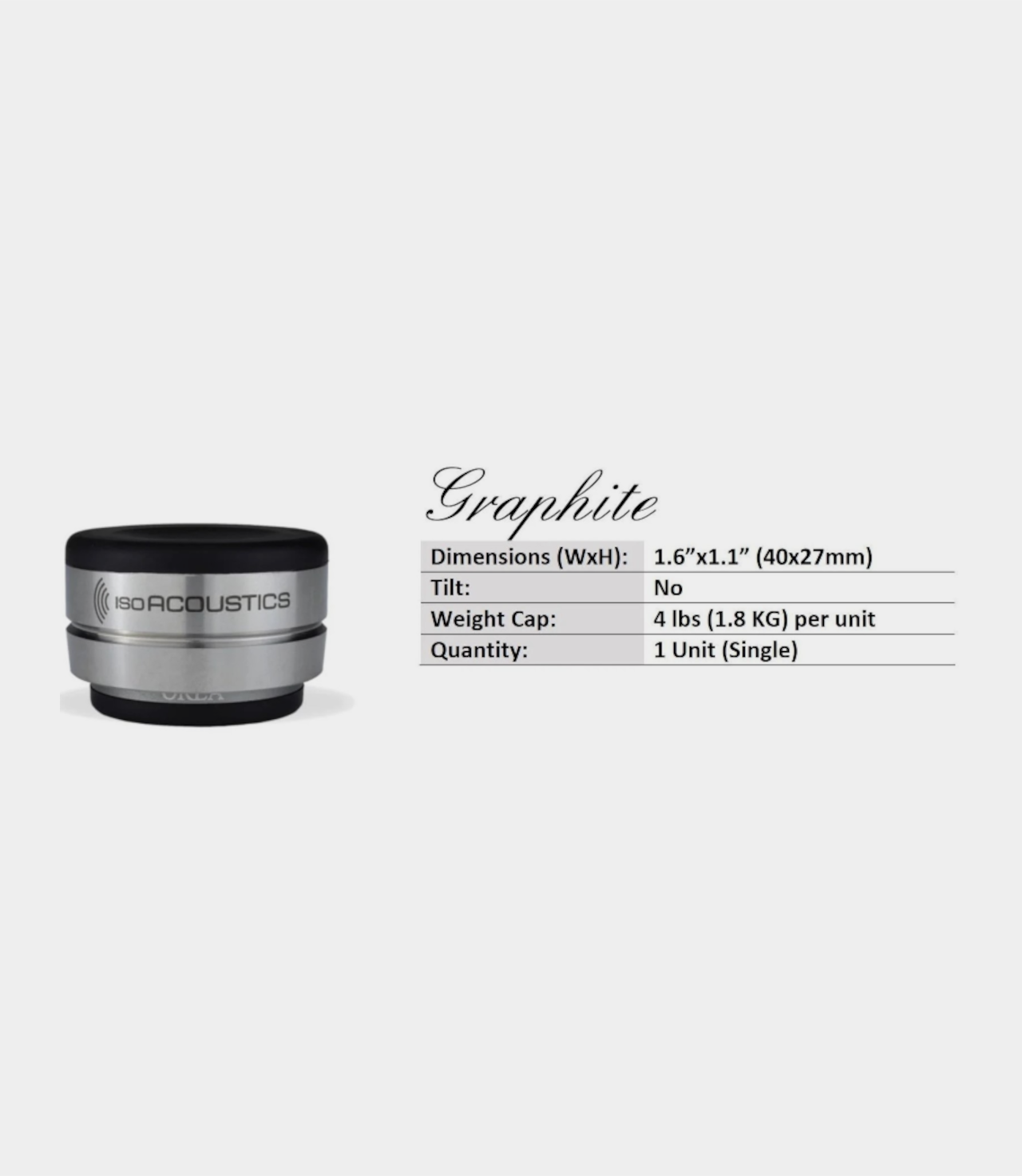Izolační nožičky pro zvukové komponenty řady Orea jsou navrženy tak, aby eliminovaly parazitní vibrace a zajistily větší čistotu a ostrost zvuku. Izolační nožičky Orea, které jsou ideální pro elektronické komponenty, jako jsou zesilovače, převodníky, přehrávače CD, reproduktory a gramofony, jsou vyrobeny z obráběné nerezové oceli a mají nízkoprofilový design, který minimalizuje nárůst výšky. Každý model Orea je navržen s jinou nosností. Každý z nich má na spodním izolátoru barevný kroužek, který označuje model a hmotnostní kapacitu. Řada Orea je balena jednotlivě, což umožňuje větší flexibilitu při určování počtu použitých jednotek. V závislosti na hmotnosti doporučujeme minimálně 3 jednotky pod každý komponent. Nosnost jednoho prvku je 1,8kg. Cena za 1 kus.