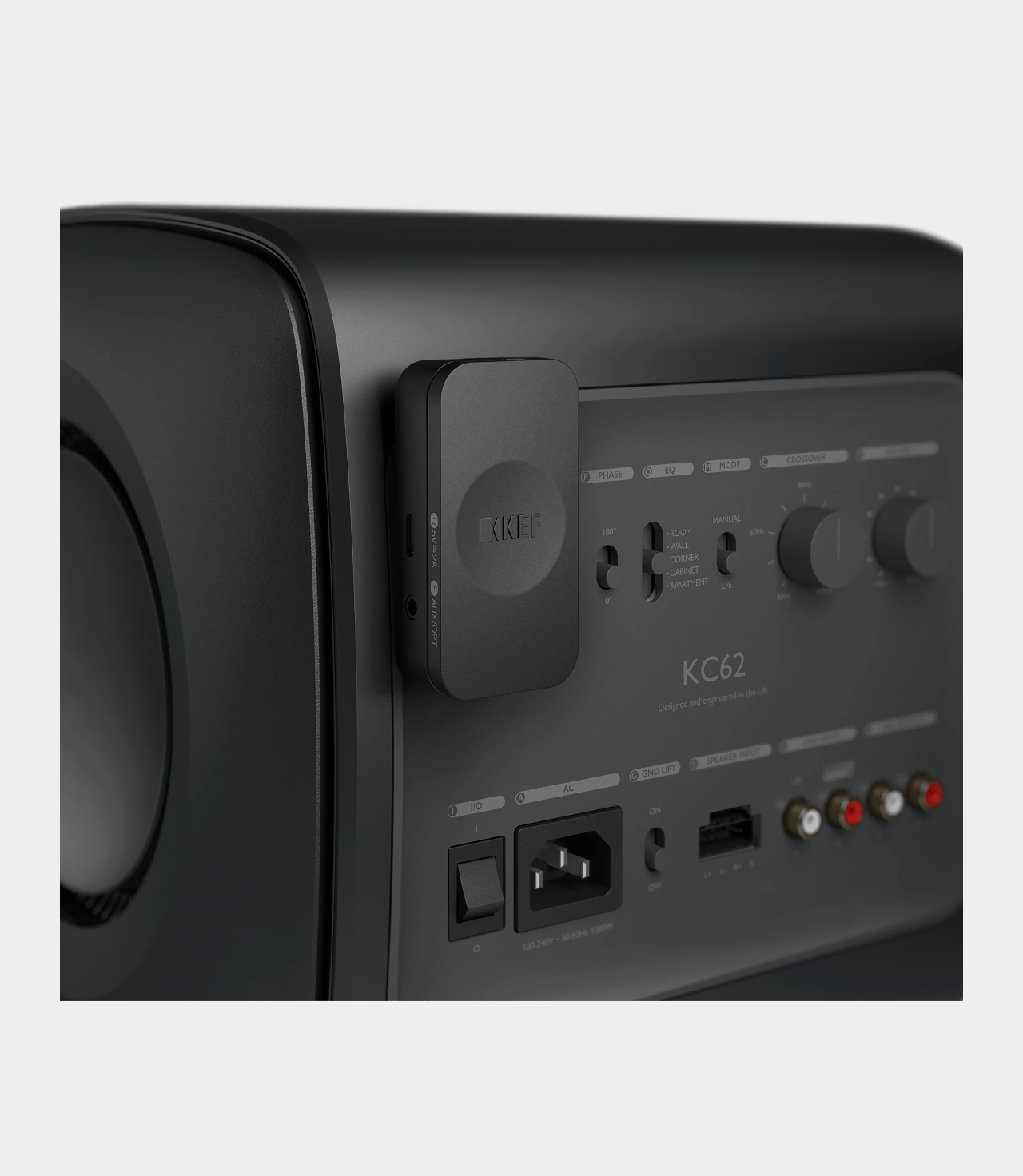 KW2 přijímá bezdrátové signály ze soundbaru XIO a přenáší je do jakéhokoli subwooferu, ke kterému je připojen. Bez námahy se zapojí do zadní části jakéhokoli aktivního subwooferu KEF, včetně KC62, KC92 a Kube. Subwoofery jiných výrobců lze připojit přes kombinovaný výstup Aux/Optical.