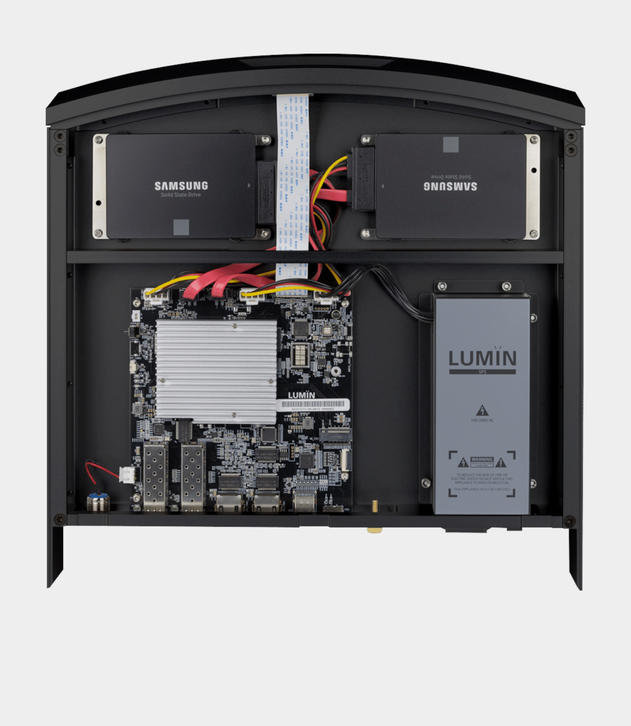 Pokročilý hudební server s až dvěma interními disky, s plug and play konfigurací a navíc slouží jako 4portový síťový switch audiofilské kvality. Ideální partner pro majitele zařízení Lumin, kteří si chtějí uložit vlastní hudební sbírku. Bezproblémové ovládání zařízení Lumin L2 popírá jeho pokročilé funkce a bezkonkurenční flexibilitu. Díky 4portovému síťovému switchi audiofilské kvality na palubě, jeho dvěma optickým SFP portům a dvěma tradičním portům RJ45 dokáže L2 zefektivnit a vylepšit vaši síť. K dispozici ve verzi bez disků nebo s kapacitou 4 TB nebo 8 TB. Stačí přidat hudbu do přehrávače Lumin L2 přes USB nebo po síti a vše se odehraje automaticky. Žádná složitá instalace nebo nastavování. Podpora SMB pro přenos přes síť. USB 3.0 Micro typ B pro připojení k počítači. Dva porty SFP umožňují vstup a výstup optických vláken a zcela elektricky oddělují hi-fi od zbytku sítě. Stíněné napájení s nízkým šumem, silné a pevné hliníkové šasi CNC a prostorné vnitřní uspořádání – to vše pomáhá poskytovat síťovému přehrávači nedotčená data.