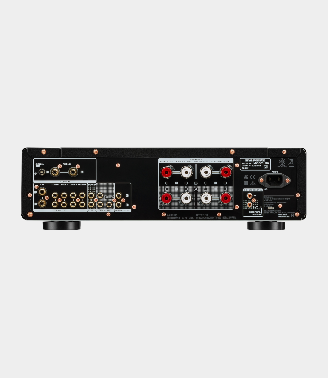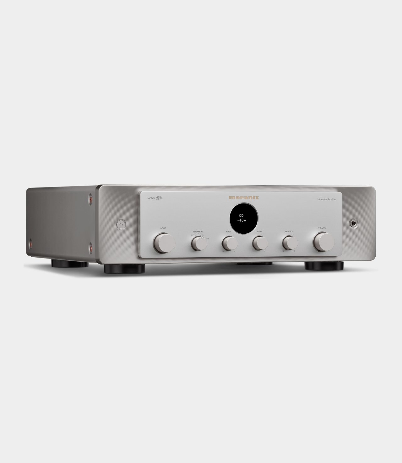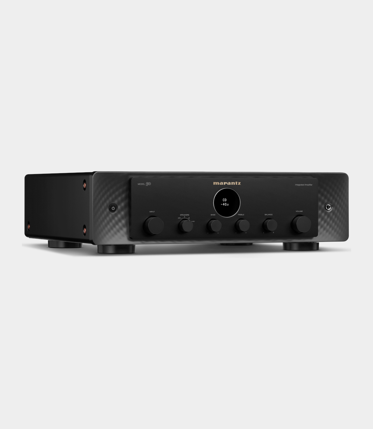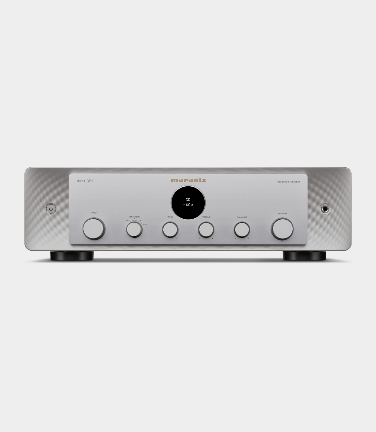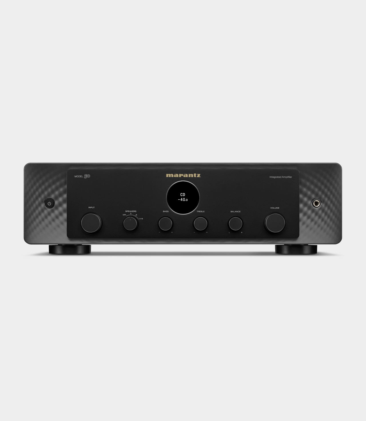 MODEL 50 je ideální integrovaný zesilovač. Díky 70W na kanál s jedinečným výkonem Marantz s proudovou zpětnou vazbou a obvodům HDAM-SA3 tento zesilovač pohání reproduktory s naprostou kontrolou. Při konstrukci modelu MODEL 50 byl prvořadý analogový přístup. Rozhodnutí vyloučit digitální zvuk zajišťuje zcela intuitivní ovládání a eliminuje riziko rušení složitými digitálními obvody. MODEL 50 má k dispozici řadu analogových vstupů, takže může přijímat zvuk z nesčetných zdrojových komponentů a obsahuje vylepšené konektory pro CD přehrávač a gramofony. Vestavěný gramofonový předzesilovač pro MM přenosky spolupracuje s vaším gramofonem a zesiluje nuance a tóny vašich vinylů. Používá nový obvod bez vazebních kondenzátorů způsobujících zkreslení. Výstupy stereofonního předzesilovače modelu MODEL 50 zvyšují flexibilitu nastavení vašeho audio systému. Připojte subwoofer, přidejte kanály domácího kina nebo znásobte poslechové zóny – možnosti jsou neomezené.