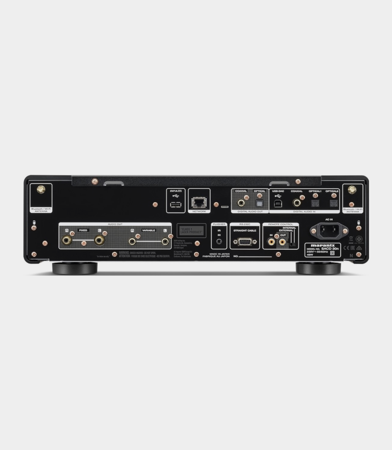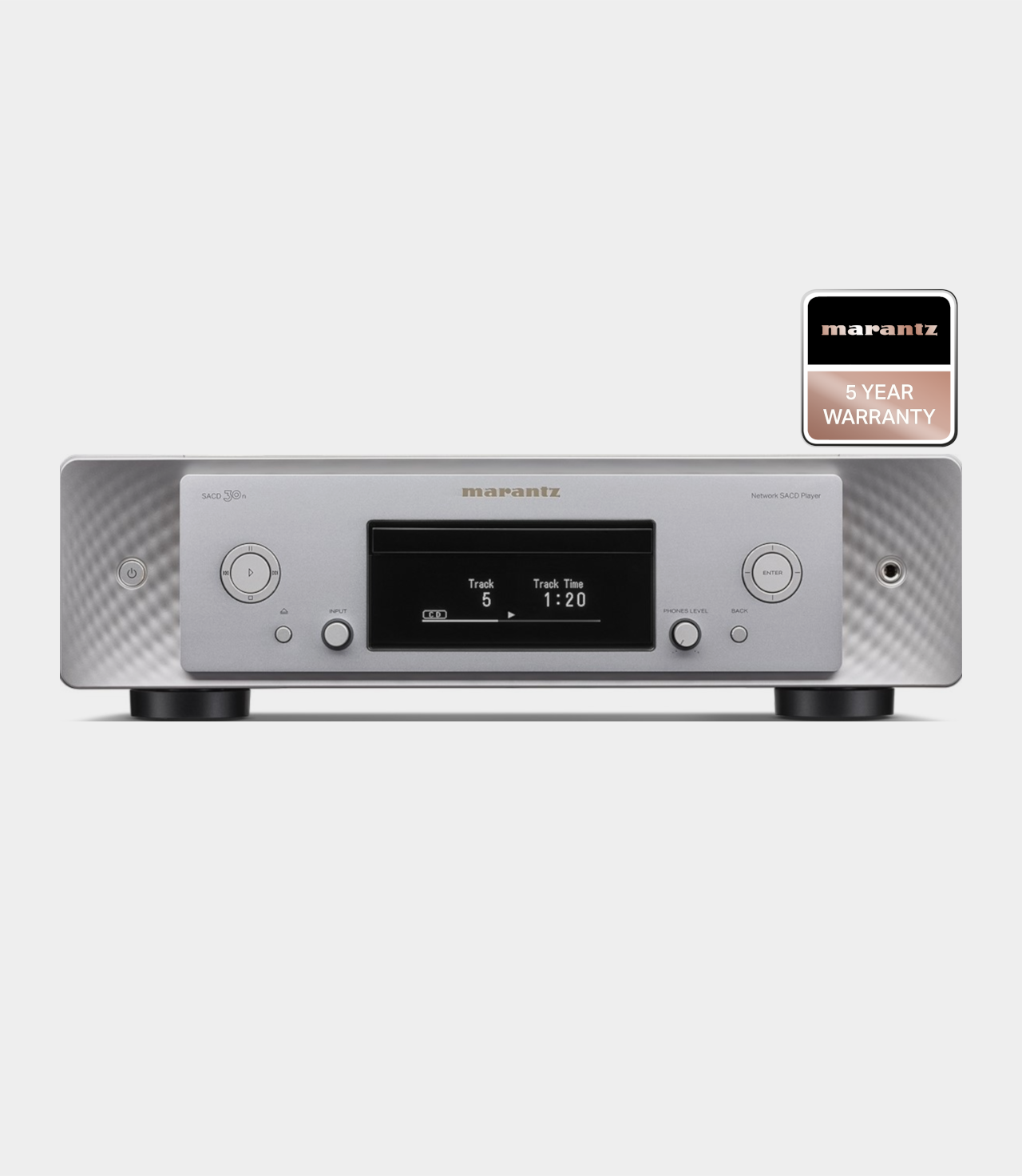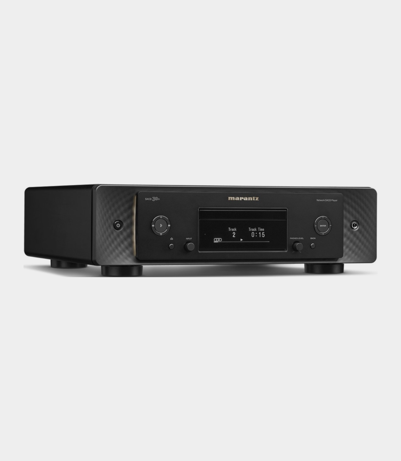 Špičkový CD/SACD přehrávač s integrovaným síťovým přehrávačem. Obsahuje špičkový transportní mechanismus SACDM-3L, který byl vyvinut čistě pro přehrávání audio disků. Mechanika je schopna přehrát nejen CD a SACD, ale i hudební kompilace na CD-R nebo CD-RW. SACD 30n disponuje asynchronním vstupem USB-B, který přehrává hudební formáty až do rozlišení PCM 32bit/384kHz nebo DSD11,2MHz a zpracovává veškeré digitální signály pomocí jedinečné technologie Marantz Musical Mastering, kdy jsou všechny převedeny do 1-bitové formy a frekvence 11.2 MHz, tedy do formátu DSD. Díky vestavěné technologii HEOS, AirPlay 2 a kompatibilitě s hlasovým ovládáním, které lze využít i pro bezproblémové ovládání přehrávání.