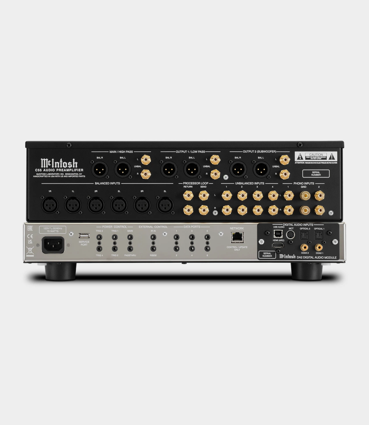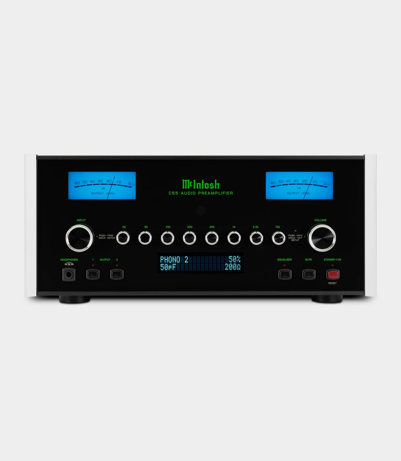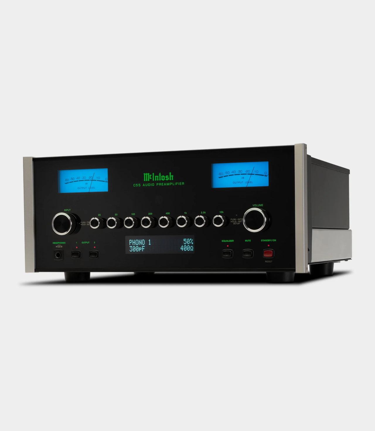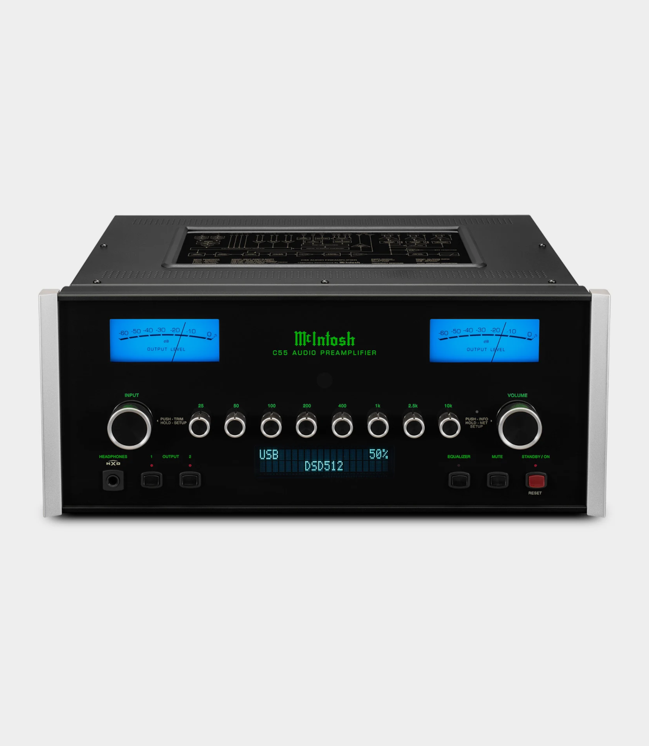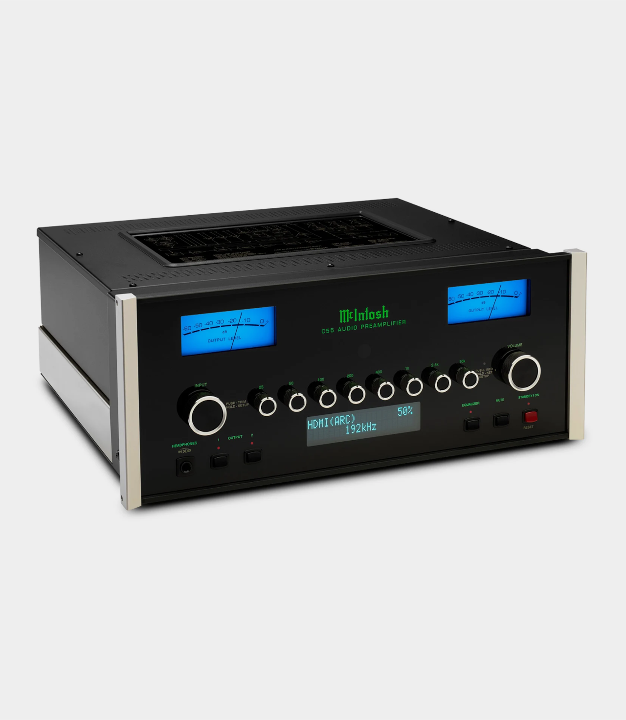 Předzesilovač C55 je vrcholem zvukové dokonalosti určeným pro audiofily, hudební nadšence a oddané fanoušky značky McIntosh. Jako nositel inovací přebírá štafetu od svého předchůdce, mnohokrát oceněného modelu C53, a posouvá váš domácí audio zážitek do nových sfér zvukové nirvány. Díky preciznosti a řemeslnému zpracování zaujímá model C55 hrdě místo skutečného lídra v oboru. Univerzální stereofonní předzesilovač C55 nabízí dohromady šestnáct vstupů. Analogových symetrických, nesymetrických i digitálních. Připraven je i pro gramofony s přenoskami typu MM a MC. Oba phono vstupy jsou vybaveny nastavitelným ziskem v 6dB krocích od 40dB do 64dB a také ekvalizací RIAA. Digitální vstupy zajišťuje audio modul DA2, který bude možné v budoucnu upgradovat jeho poměrně snadnou výměnou a držet tak krok s nejmodernějšími digitálními formáty. Modul obsahuje mimo jiné i digitální přípojku MCT pro firemní SACD/CD transporty a nově i HDMI pro integraci do A/V systémů. Vestavěný D/A převodník si poradí se signály PCM do vzorkovací frekvence 384 kHz a rozlišení 32 bitů, streamy DSD (až do DSD512) i profesionálním formátem DXD.