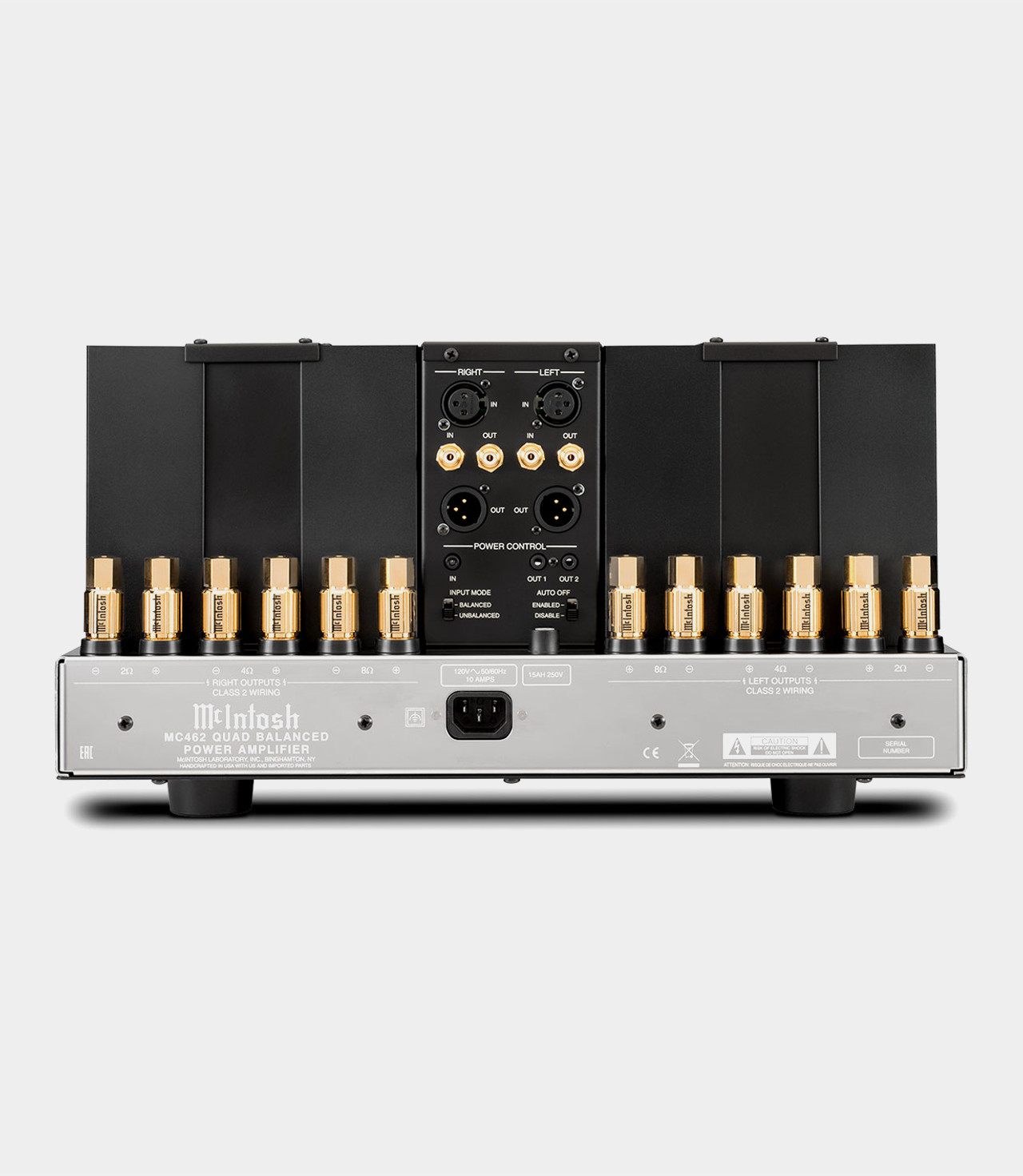Stereofonní koncový zesilovač. MC462 nahrazuje vysoce uznávaný model MC452 a se svými 450W výkonu na kanál, bez ohledu na impedanci reproduktorů, zůstává nejsilnějším stereo koncovým stupněm v nabídce legendárního amerického výrobce. MC462 obdržel proti předchozímu modelu řadu vylepšení. Nejvýznamnější je to, že kapacita filtrů se zvýšila téměř o 50%, což vedlo k pozoruhodnému 66% nárůstu dynamického rozsahu z 1,8 dB na 3,0 dB. To umožňuje MC462 snadno zvládnout výrazné výkyvy v dynamice a bez námahy reprodukovat oblíbenou hudbu prakticky bez zkreslení. V důsledku zvýšení kapacity filtrů se zlepšil také výkon na nízkých kmitočtech. Upgradována byla rovněž vnitřní kabeláž a obvodové komponenty sběrnice. Nově je zde i ekologický systém řízení spotřeby, který vypne zesilovač po uplynutí nastaveného času, kdy nebyl detekován žádný vstupní signál.