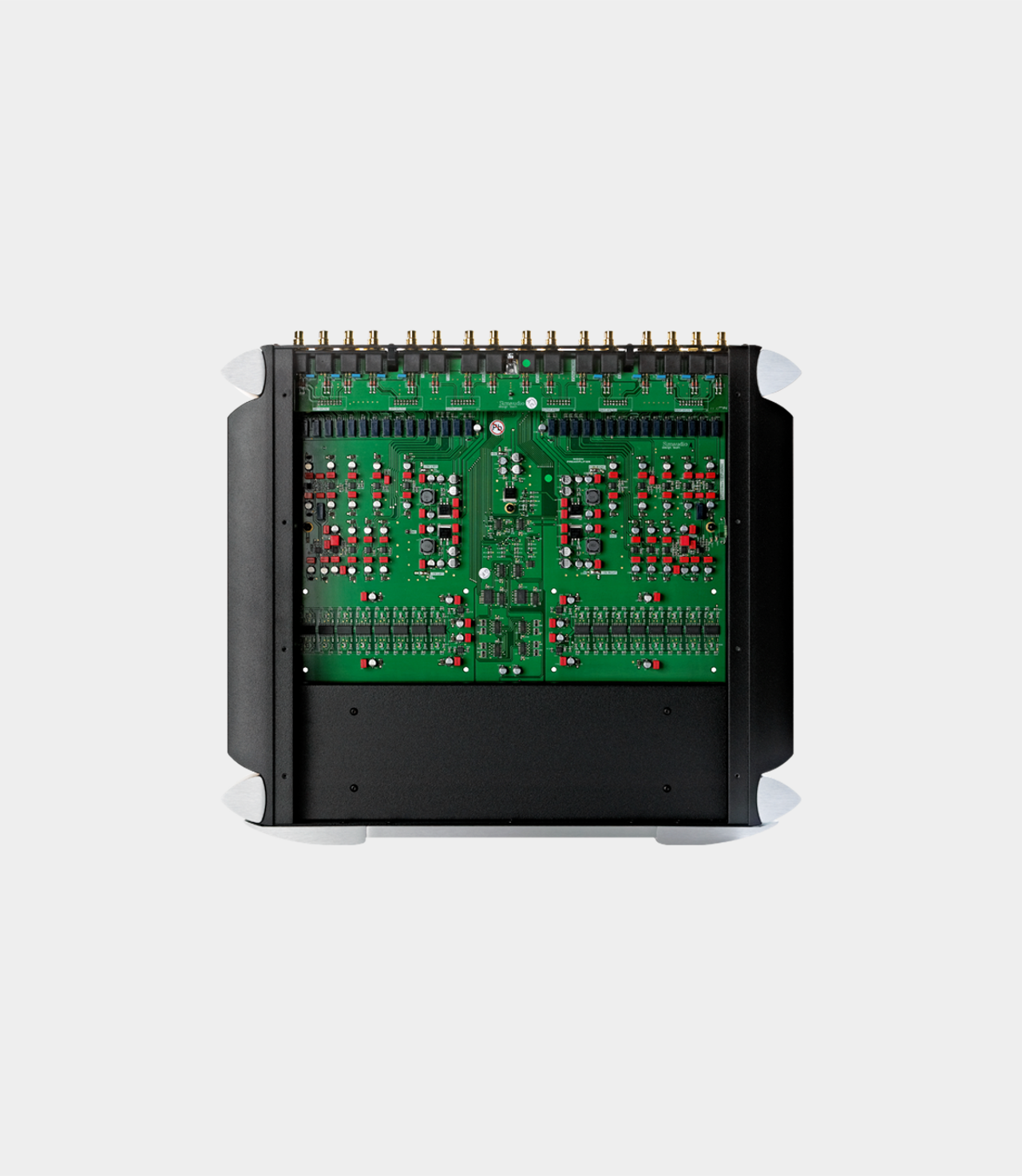 Ultimátní stereofonní předzesilovač pro nejvyšší audiofilské nároky na reprodukci hudby. V high-end řetězci nezanechává po sobě žádnou zvukovou stopu a nechává hudbu pouze plynout. Klíčem ke skvělému zvuku je mimo jiné i použité řešení dvou oddělených komponentů. V jednom šasi se nachází napájecí zdroj, digitální řídící obvody, softwarové zpracování a LED displej. Druhé šasi obsahuje výhradně audio obvody. Regulace napájecího napětí využívá systému nezávislého indukčního filtrování stejnosměrného proudu, kdy pro každý ze 40 integrovaných obvodů použitých v signálové cestě je vyhrazený jeden induktor. Uživateli je k dispozici celkem osm analogových linkových vstupů, včetně tří symetrických, přičemž každý z nich umožňuje nastavení zisku v rozmezí ±10dB. K dispozici je i jedna monitorovací smyčka. Analogové vstupy jsou konfigurovatelné, tento komponent lze tedy použít, ve spojení s AV receiverem, i jako špičkový předzesilovač v režimu domácího kina (ovládání hlasitosti je vyřazeno).