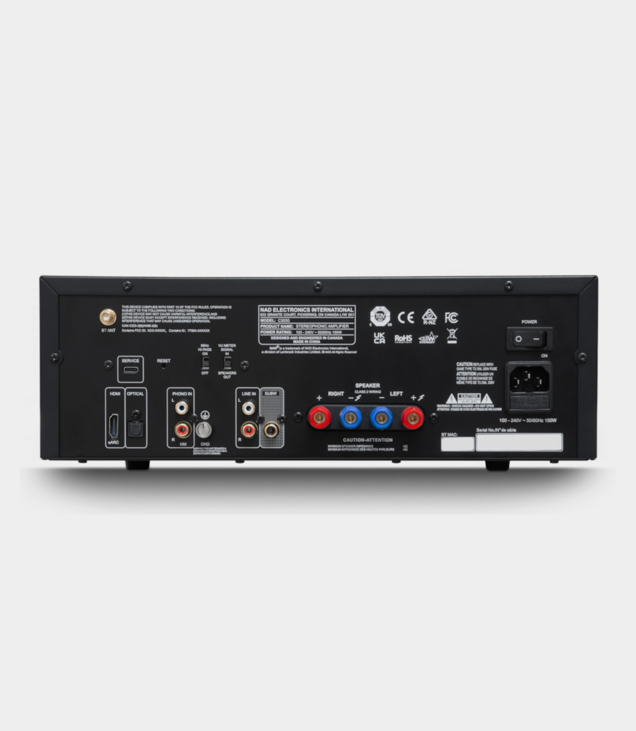 Model C 3030 je navržen tak, aby se hladce integroval do moderních A/V systémů. Díky rozhraní HDMI eARC jej můžete připojit přímo k televizoru a vylepšit tak zvuk filmů a pořadů, zatímco rozhraní Bluetooth usnadňuje bezdrátové přehrávání hudby ze smartphonů, tabletů a notebooků. Výstup subwooferu s řízenými basy a volitelným vysokopásmovým filtrem 80 Hz přidává flexibilitu pro vytvoření vyváženého systému 2.1. Díky těmto možnostem nabízí C 3030 to správné připojení jak pro každodenní poslech, tak pro specializované hi-fi použití.