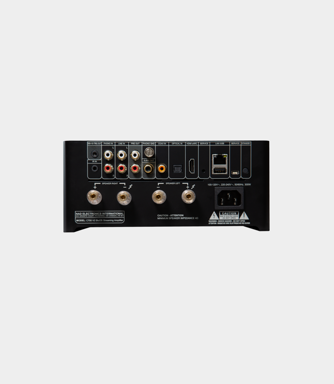 Díky vestavěnému Ethernetu a Wi-Fi a síťovému streameru založenému na bohaté a robustní softwarové platformě BluOS má C 700 V2 vše, co potřebujete k přehrávání hudby prostřednictvím svých oblíbených reproduktorů. Pomocí aplikace BluOS Controller můžete spouštět hudbu z desítek různých streamovacích služeb a webových rádií nebo přehrávat hudbu uloženou na externím USB disku připojeném k C 700 V2. Novinkou modelu V2 je vestavěný gramofonový předzesilovač, takže můžete připojit gramofon s MM přenoskou, aniž byste potřebovali externí předzesilovač.