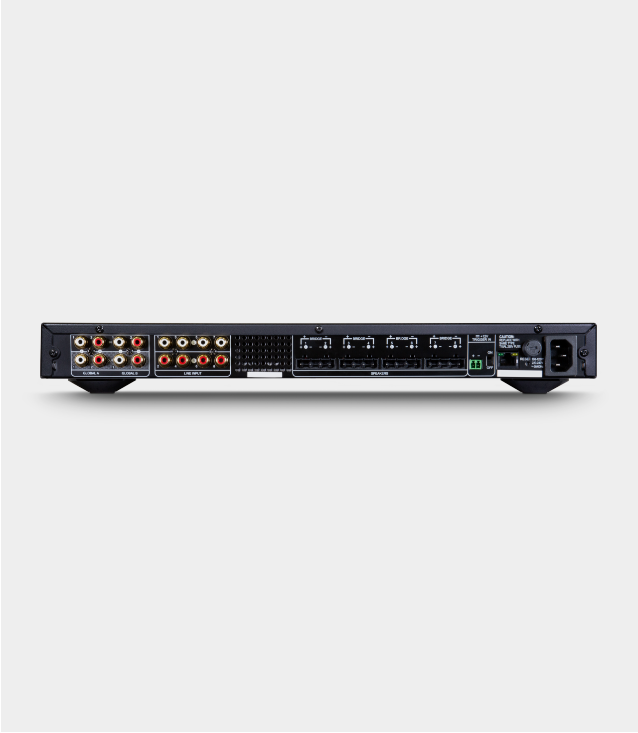 NAD CI 8-120 DSP V2 je 8-kanálový síťový zesilovač, který přináší kvalitu legendárních stereo produktů NAD do světa distribuovaného zvuku. Srdcem tohoto zesilovače je vylepšená technologie HybridDigital s osvědčeným koncovým stupněm Hypex UcD, která zaručuje extrémně nízké zkreslení a stabilní výkon bez ohledu na připojenou zátěž. Zesilovač dodává poctivých 120 wattů na kanál do 8 ohmů při zapojení všech kanálů současně, avšak v případě potřeby extrémního výkonu je možné kanály přemostit (bridge mode) až na 200 W na kanál. Díky filozofii „Full Disclosure Power“ se můžete spolehnout, že deklarovaný výkon je reálný a dostupný i při dlouhých kabelových trasách či náročných reproduktorech, přičemž zvuk zůstává vždy čistý, detailní a dynamický – ať už při tichém podkresu nebo vysoké hlasitosti.