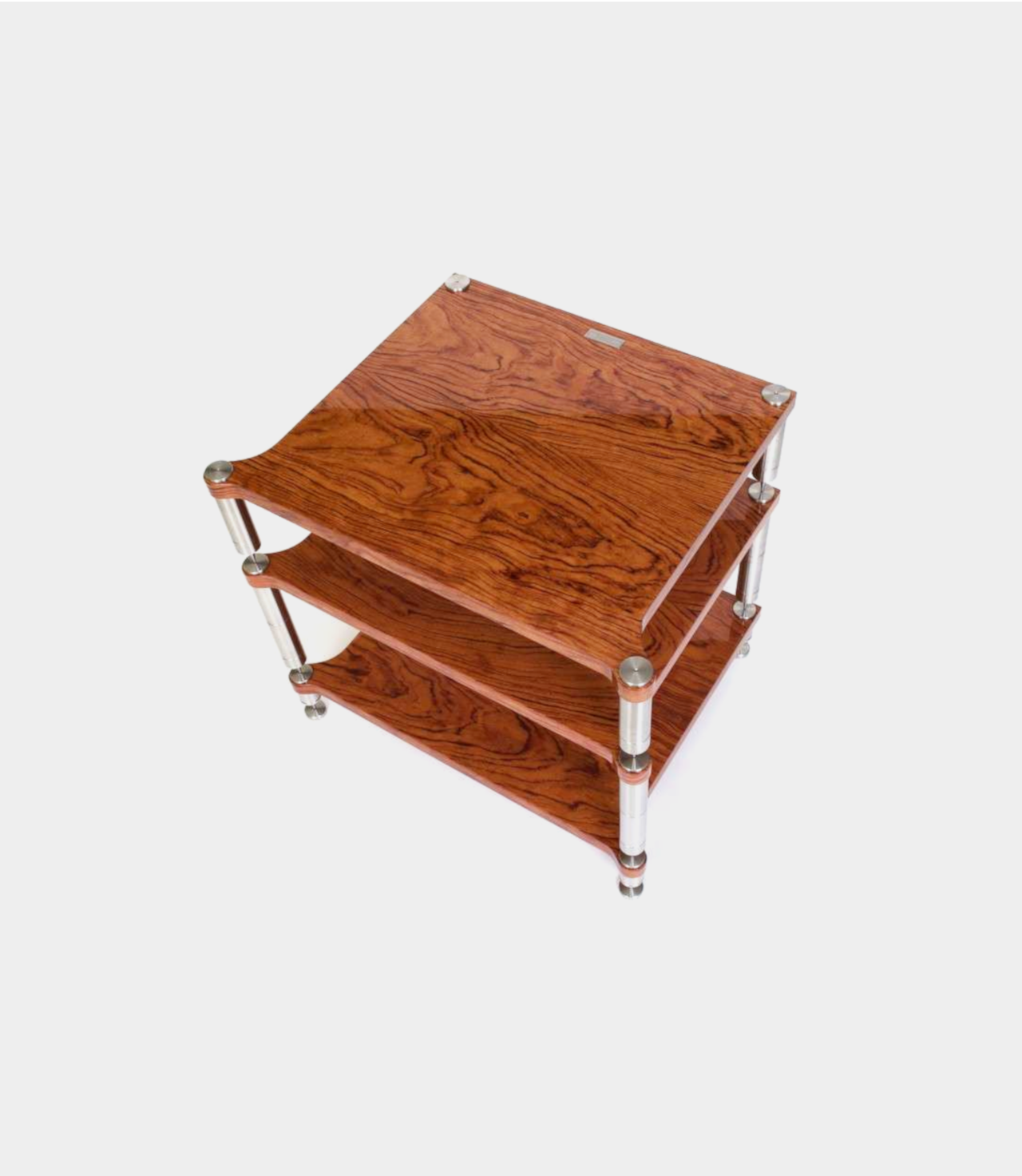 HiFi stolek Quattron je referenční model značky NEO a je určen pro velké a těžké komponenty. Quattron se skládá ze základní spodní části se čtyřmi hroty. Na základnu jsou pokládány další police vybavené robustními ocelovými nohami zakončené antirezonančními hroty v pěti výškových verzích. To umožňuje velkou variabilitu a vám možnost sestavit si stolek přesně podle svých potřeb a výšky komponentů. Výška polic je 12.2, 17.2, 22.2, 27.2 a 32.2 cm Ocelové nohy o průměru 4cm jsou standartně nabízeny v černé barvě, nebo z nerezové oceli. Podpěrné hroty absorbují vibrace zvukových komponentů, které mají negativní vliv na poslech. Regály jsou vyrobeny z MDF desek o tloušťce 2.9cm a mají nosnost 70kg. Standartně jsou desky vyráběné v bílé a černé barvě a přírodní dýze z vlašského ořechu, třešně a javoru. Na přání zákazníka je možné vyrobit stolek v jakémkoliv odstínu barvy RAL, nebo přírodní dýhy.