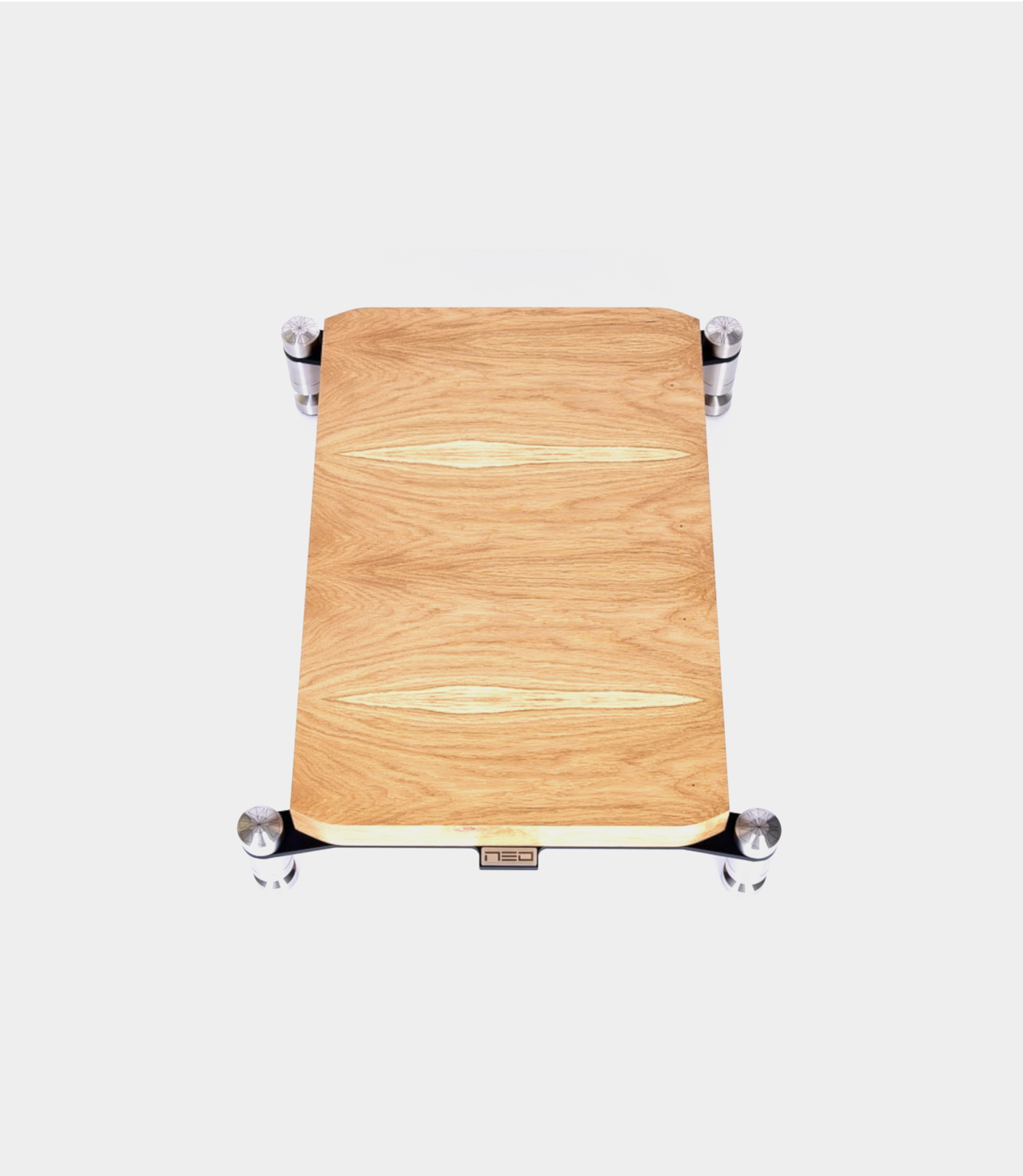 HiFi stolek Neo Power Amp Quattron je kombinací funkčnosti a luxusu. Tento stolek pod výkonové zesilovače tvoří základna z MDF desky o tloušťce 28mm a nosnosti 70kg se čtyřmi nohami. Ocelové nohy s hroty jsou standardně nabízeny z nerezové oceli nebo v příplatkové černé barvě Luxury Black Diamond. Podpěrné hroty absorbují vibrace zvukových komponentů, které mají negativní vliv na poslech. Standardně jsou desky vyráběné v bílé a černé barvě a přírodní dýze z vlašského ořechu, třešně a javoru. Na přání zákazníka je možné vyrobit stolek v jakémkoliv odstínu barvy RAL nebo přírodní dýhy. Pro více informací nás kontaktujte.