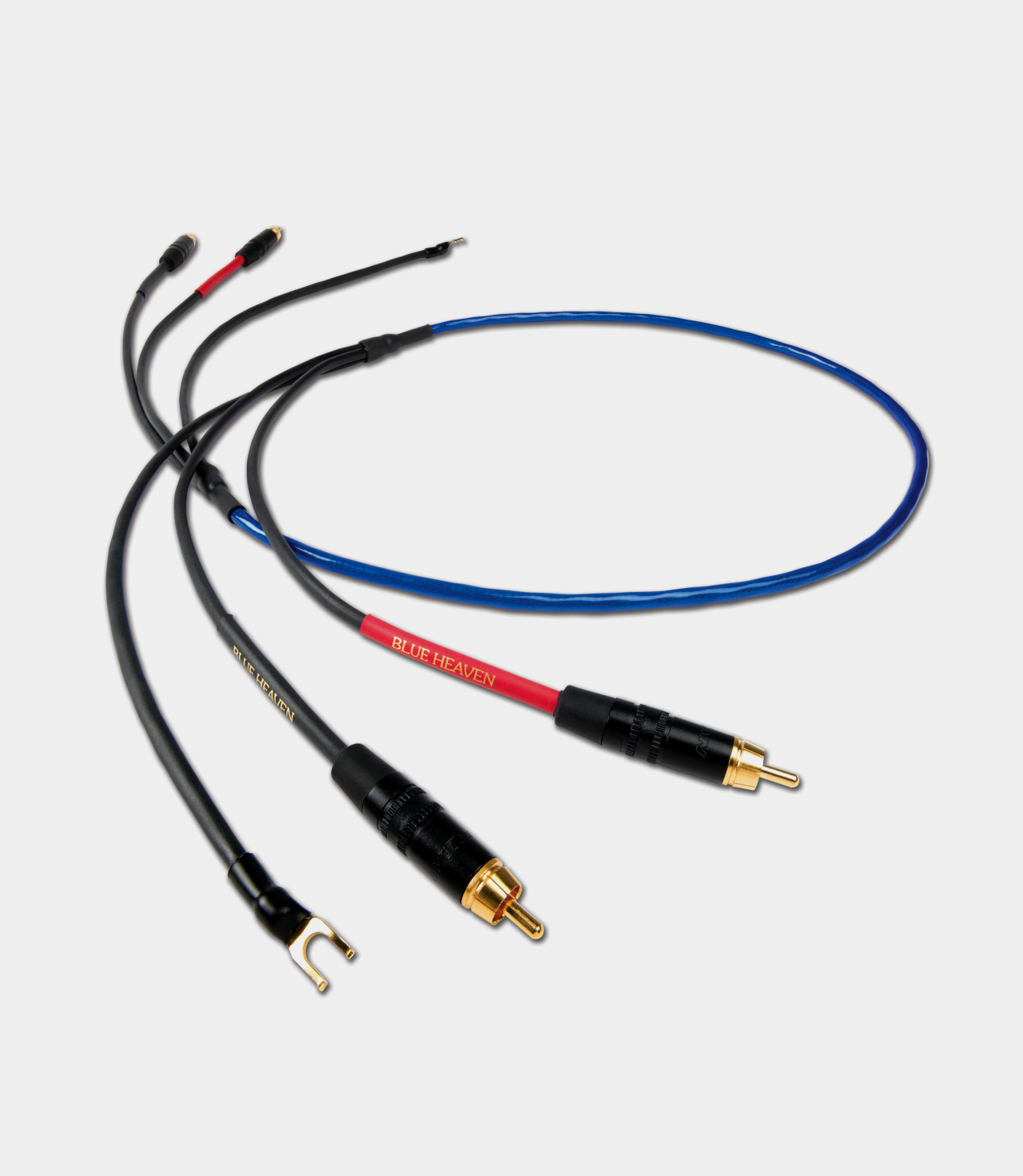 Phono kabel je jedním z nejdůležitějších audio kabelů v analogovém audio systému a jako takový vyžaduje specifické vodiče s nízkou kapacitou, aby maximalizoval autentickou a přirozenou hudební reprodukci, kterou LP nabízejí. Kabel Blue Heaven Phono používá konstrukci kabelu s krouceným párem postříbřených měděných vodičů k přenosu levého a pravého kanálu. Tyto vodiče jsou jednotlivě stíněny, aby se vyloučily přeslechy mezi kanály. Používá také samostatně stíněný, postříbřený zemnící vodič, zabalený do izolace, aby se minimalizoval šum. Nejzajímavějším aspektem tohoto designu kabelů je právě revoluční řešení uzemnění. Společnost Nordost zavedla odnímatelné zemní vodiče, doplněné o technologii Micro Mono-Filament, která dále eliminuje veškerý šum, který by mohl vzniknout během přenosu signálu, bez ohledu na jedinečnou konstrukci komponentů použitých v jednotlivých audio systémech.