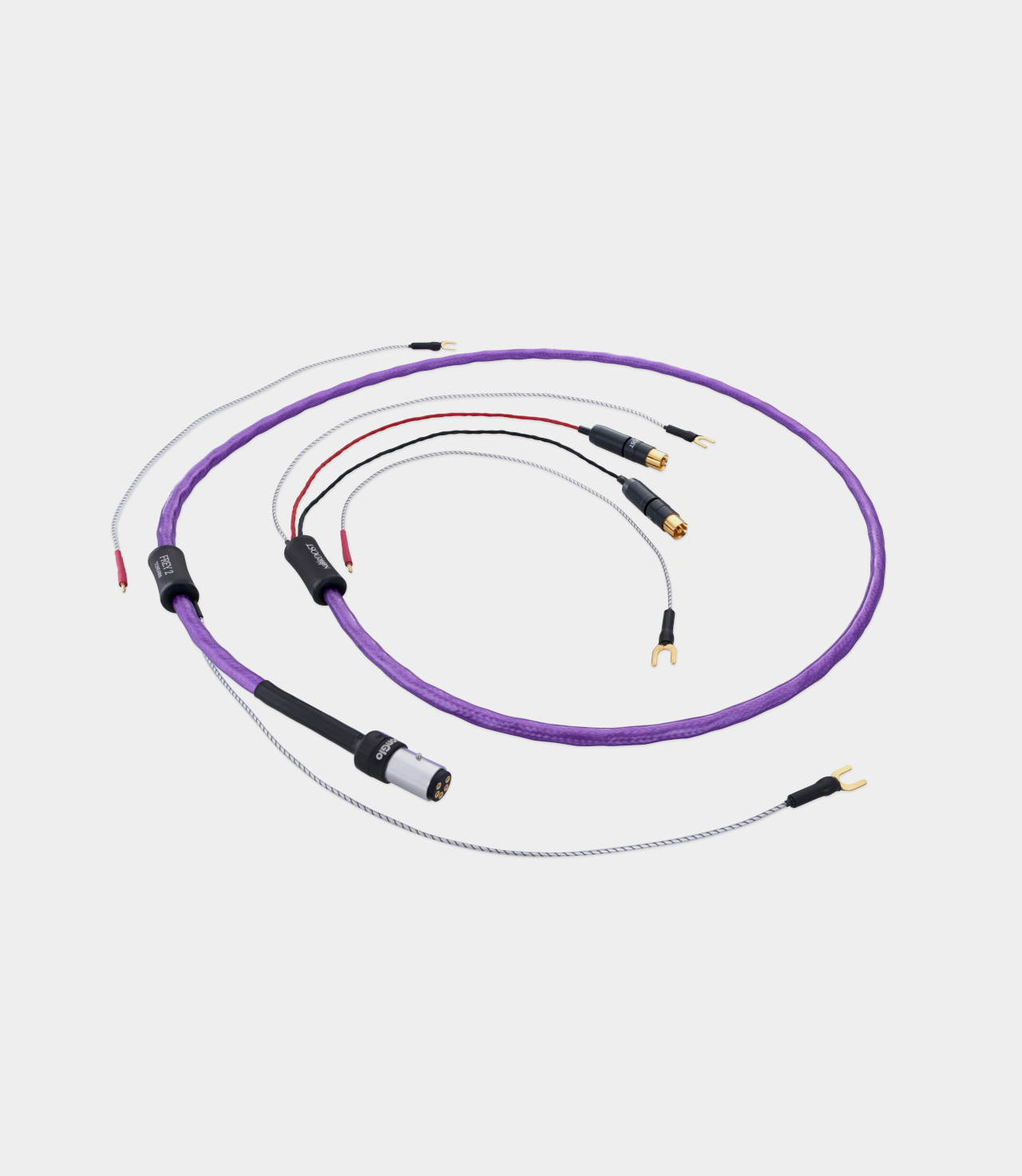 Phono kabel je jedním z nejdůležitějších audio kabelů v analogovém audio systému a jako takový vyžaduje specifické vodiče s nízkou kapacitou, aby maximalizoval autentickou a přirozenou hudební reprodukci, kterou LP nabízejí. Kabel Frey 2 Phono je prakticky prostý vlastního šumu, s vysokou rychlostí přenosu a širokým přenosovým pásmem, a to díky konstrukci kroucených párů postříbřených měděných vodičů, individualizovanému stínění a patentované technologii Nordost Dual Mono-Filament. Používá také samostatně stíněný, postříbřený zemnící vodič, zabalený do izolace, aby se minimalizoval šum. Nejzajímavějším aspektem tohoto designu kabelů je právě revoluční řešení uzemnění. Společnost Nordost zavedla odnímatelné zemní vodiče, doplněné o technologii Micro Mono-Filament, která dále eliminuje veškerý šum, který by mohl vzniknout během přenosu signálu, bez ohledu na jedinečnou konstrukci komponentů použitých v jednotlivých audio systémech.
