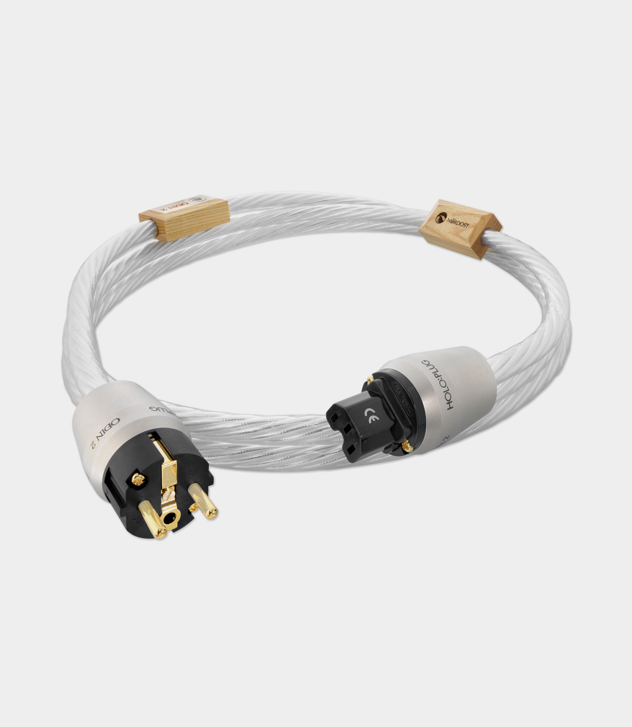 Napájecí kabel Odin 2 je vyroben ze sedmi postříbřených vodičů s malou tolerancí z bezkyslíkaté mědi o průměru 14 AWG a čistotě 99,999999 %. Poté je použita patentovaná technologie Dual Mono-Filament společnosti Nordost, takže zkroucené párové vlákna vytvářejí virtuální vzduchové dielektrikum mezi extrudovanou izolací FEP a každým jednotlivým vodičem. Tyto složitě vinuté a samostatně izolované vodiče jsou vyrovnány s vynikající geometrickou přesností a konzistencí, což nabízí perfektní podmínky pro mechanické rezonance. Aby bylo možné dosáhnout rychlejšího náběhu v cyklu 50/60 Hz a eliminovat jakékoli vlivy rušení EMI nebo RFI, je každý vodič chráněn vrstvou postříbřeného překrývajícího se páskového stínění. Technologie TSC společnosti Nordost pokračuje v konstrukci speciálně vyvinutého, 100% stíněného konektoru HOLO:PLUG, který je k dispozici na obou koncích IEC a zástrčky. Výjimečné elektrické a mechanické vlastnosti tohoto kabelu mají ohromující účinek. Použití napájecích kabelů Odin 2 v celém systému povede k zdánlivě neexistujícímu šumu, nekonečně černému pozadí a skutečné hloubce rozsahu, kterou hudba vyžaduje.