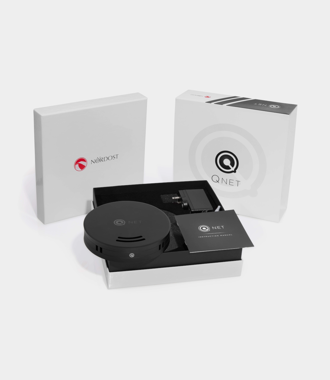 Uvnitř disponuje Qnet vysokorychlostním, vícevrstvým, impedančně řízeným návrhem, které optimalizuje signálové trasy, minimalizuje odrazy, rušení a přeslechy. Může se také pochlubit extrémně tichým a stabilním oscilátorem pro hlavní hodiny zařízení, který umožňuje minimální jitter a fázový šum. Je vybaven šesti vyhrazenými napájecími zdroji, které zajišťují nezatížený proud do všech částí a zároveň minimalizují křížovou kontaminaci a zajišťují čistý a bezporuchový provoz. Na šasi Qnet je použit extrémně odolný hliník. Toto pouzdro funguje nejen jako chlazení a ochrana pro zařízení, ale také poskytuje fyzické oddělení pro pět nezávislých portů, z nichž každý obsahuje konektor 8P8C (RJ45). Fyzické oddělení každého z těchto portů je kritickým a jedinečným konstrukčním prvkem, který zajišťuje minimální přeslechy a rušení uvnitř zařízení. Qnet je vybaven vlastním stejnosměrným napájením, pro dosažení nejlepších výsledků však doporučujeme napájení lineárním napájecím zdrojem QSource společnosti Nordost a propojení ethernetovými kabely Nordost.