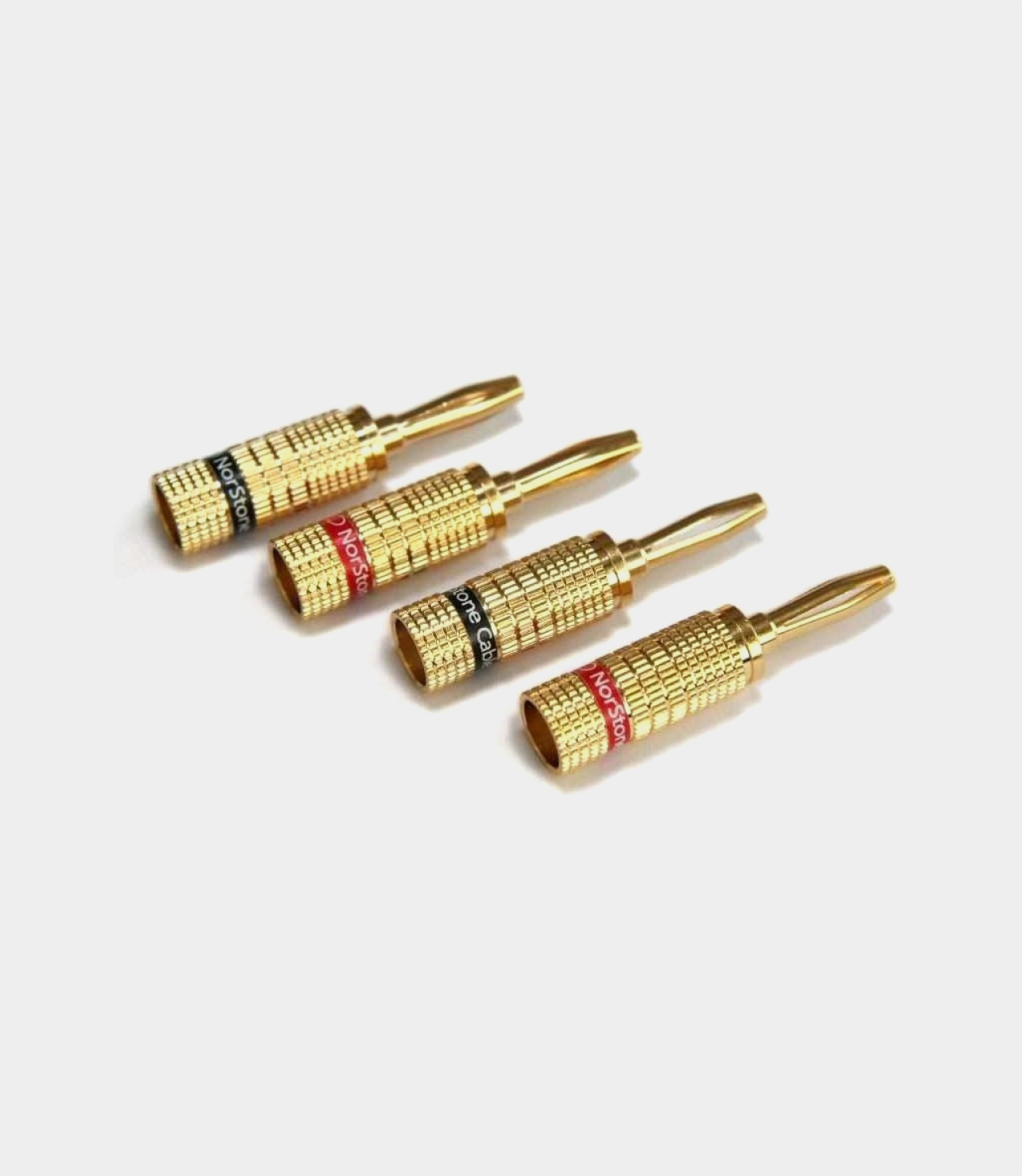 Banánky pro reproduktorové kabely. Snadná montáž pomocí dvou šroubů, které spolehlivě udrží vodiče na svém místě. Zlatá povrchová úprava konektorů zajišťuje skvělý kontakt jak s kabelem, tak se zástrčkou na repro terminálech. Pohodlné a cenově dostupné banánky NorStone jsou baleny po 4 kusech (2 červené a 2 černé) a dodávány s montážní příručkou.