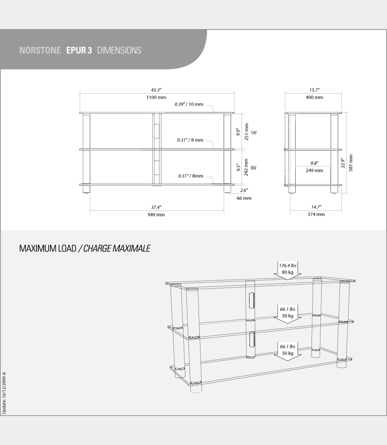 Tento AV stolek je navržen tak, aby se stal pevným základem pro váš televizor, stejně jako kompletní systém domácího kina a případně i centrální reproduktor. Konstrukce a provedení stolku Epur 3 umožní snadný přístup k vašemu zařízení, zatímco dobrý průtok vzduchu zajišťuje dokonalé chlazení vaší elektroniky. Vedle toho je potřebná kabeláž dokonale integrována do zadní středové krytky, nic tedy nenaruší designovou čistotu tohoto stolku. Horní skleněná deska o tloušťce 1cm unese až 80kg. Nohy jsou v provedení broušená ocel.