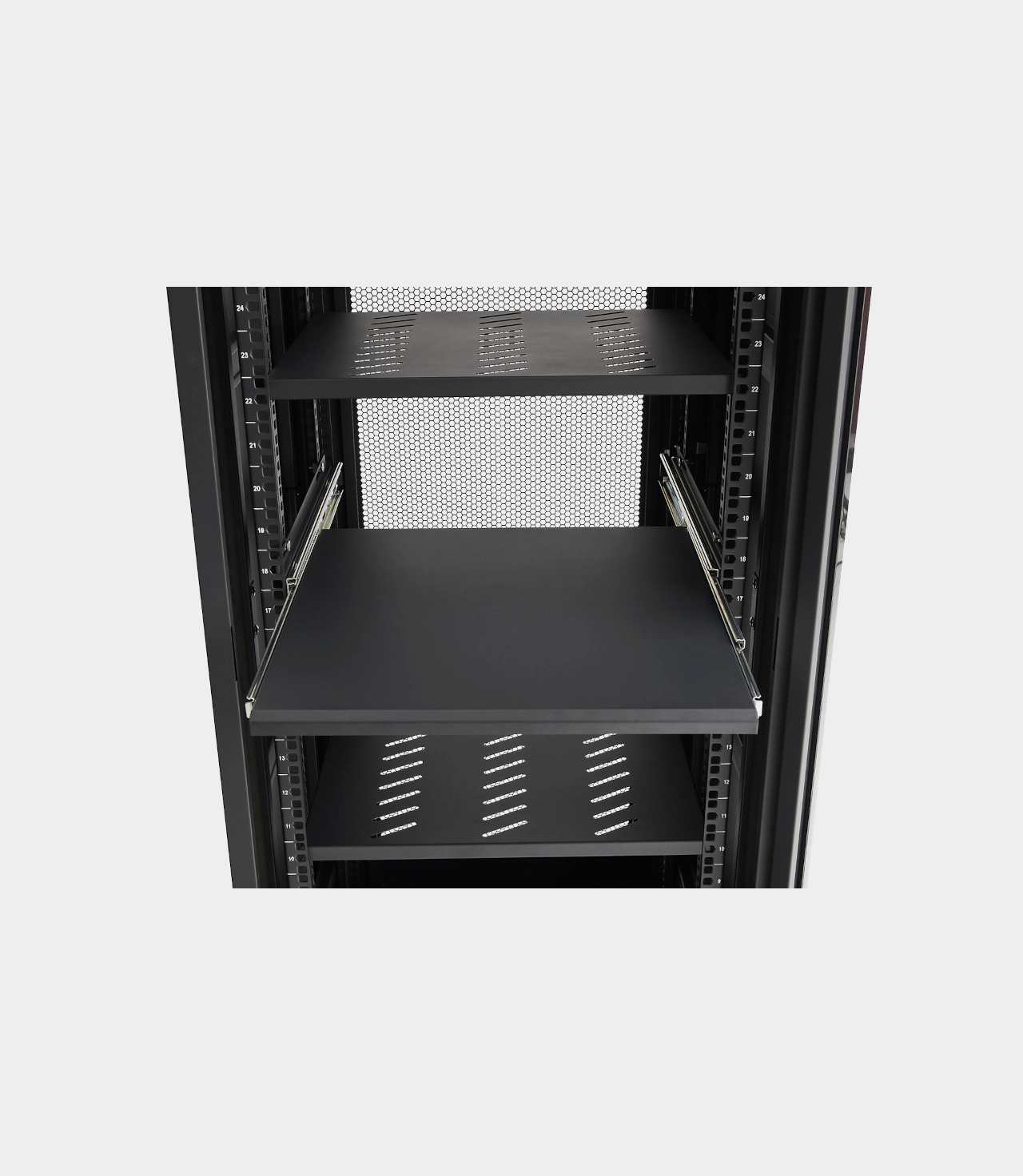 Posuvná police Norstone je praktickým a ergonomickým řešením pro optimalizaci přístupu a uspořádání zařízení v rackových skříních. S rozměry 464 x 78 x 440 mm (Š x V x H) se tato police perfektně hodí do standardních rackových skříní a zároveň poskytuje prostornou a pevnou plochu pro umístění různých zařízení. Jeho posuvný systém umožňuje plynulé a bezpečné vysunutí, což usnadňuje přístup k zařízení, aniž by bylo nutné jej z racku vyjmout. Tato funkce je obzvláště užitečná v prostředích, kde je vyžadován častý zásah, jako jsou serverovny nebo síťové instalace. Tato police, navržená tak, aby odolala mírnému zatížení, je ideální pro uložení serverů, switchů, routerů nebo jiného technického vybavení. Díky robustní konstrukci a vysoce kvalitnímu posuvnému mechanismu je spolehlivou volbou pro profesionály, kteří hledají kombinaci praktičnosti a výkonu. Posuvná police Norstone Pro, která se snadno instaluje a je kompatibilní s většinou standardních racků, je neocenitelným pomocníkem pro zlepšení přístupnosti a organizace vašeho vybavení při maximálním využití dostupného prostoru.