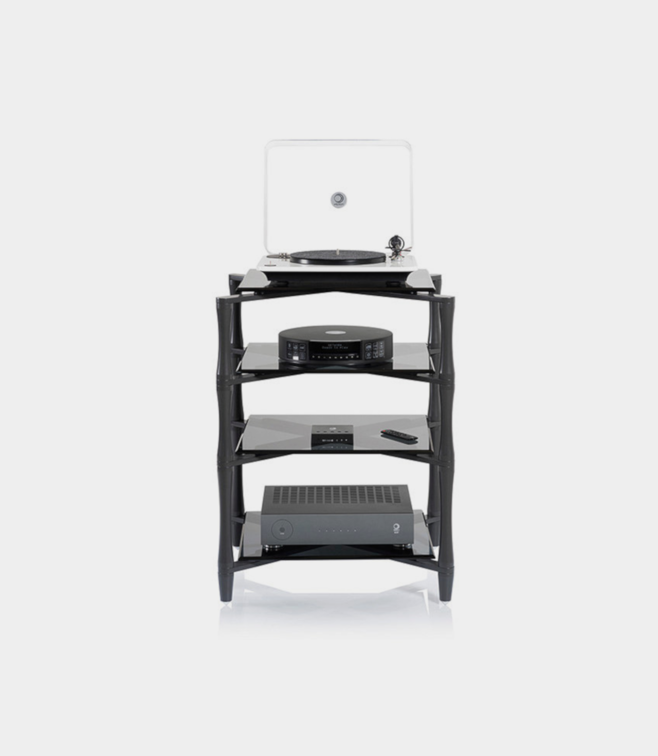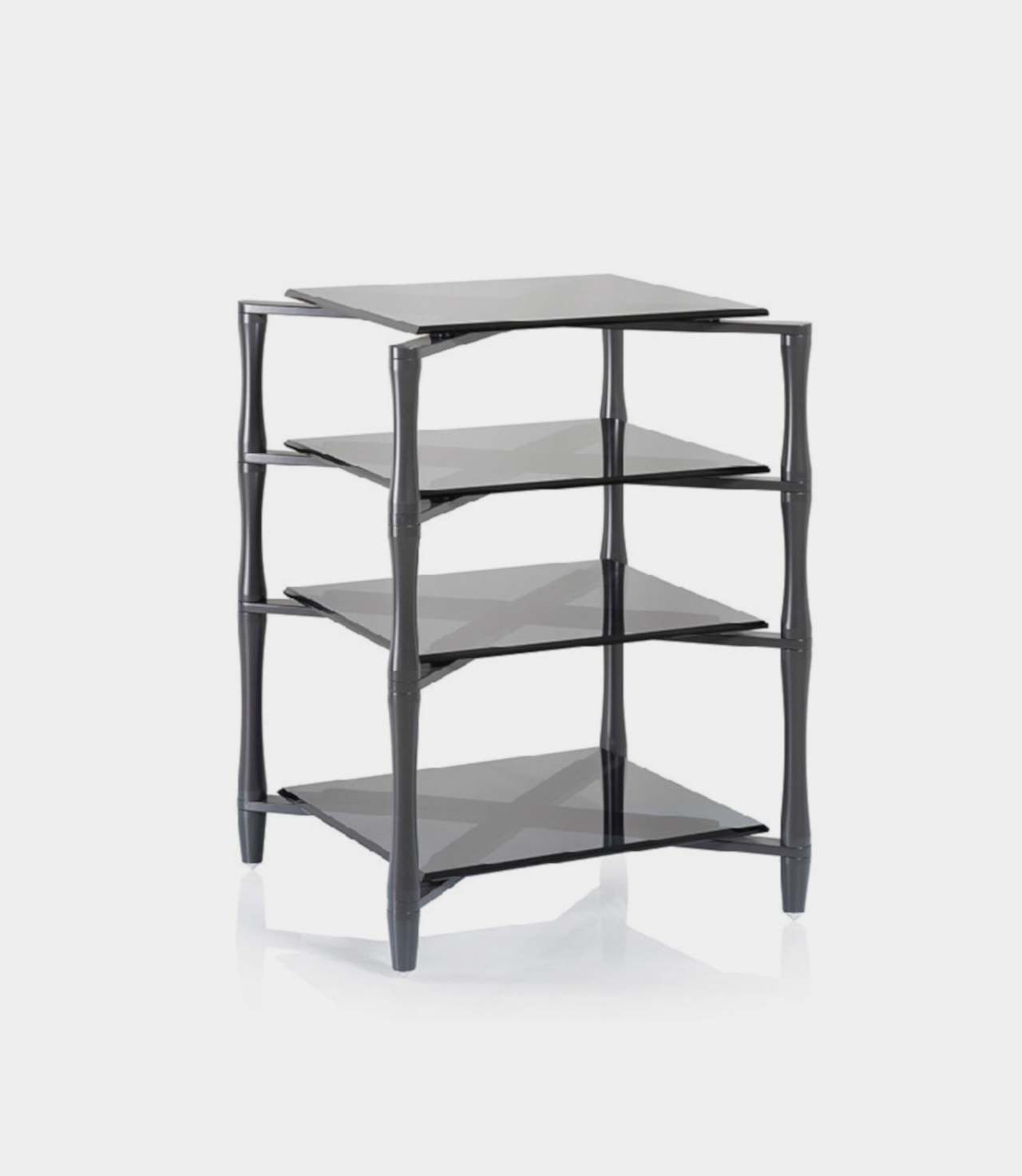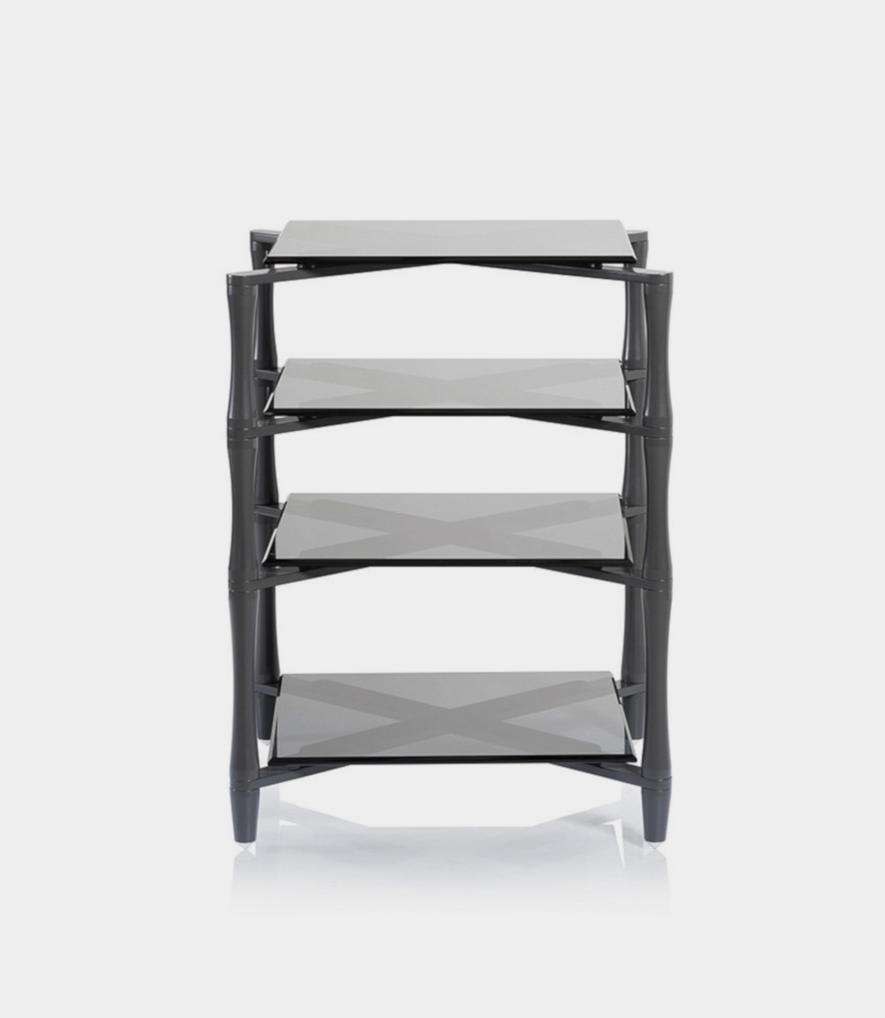 Hifi stolek Slender splňuje požadavky všech hifi nadšenců. Každá z polic z šedého kouřového skla je podepřena absorpční PVC lištou, speciálně vyvinutou pro tento stolek. Při zachování jemného a elegantního designu nabízí stolek Slender dokonalou stabilitu díky své konstrukci z velmi silných kovových trubek. Nosnost horní desky je 25kg, nosnost vnitřních desek je 50kg.