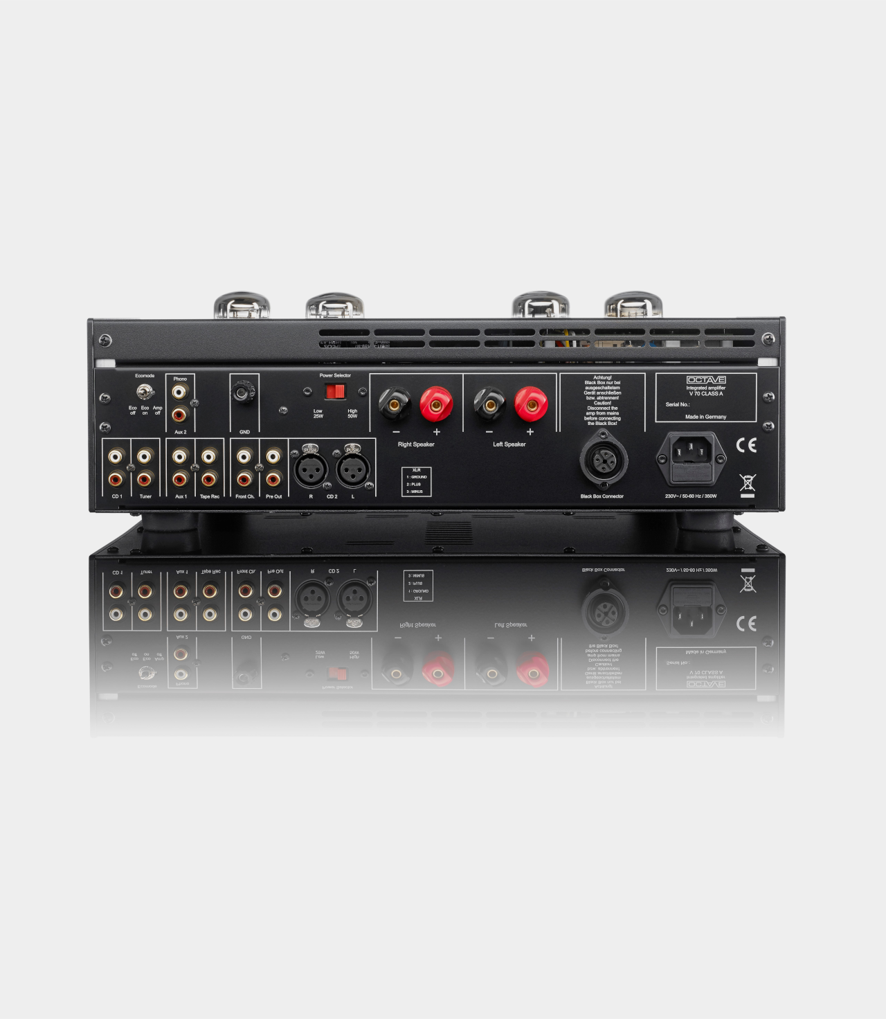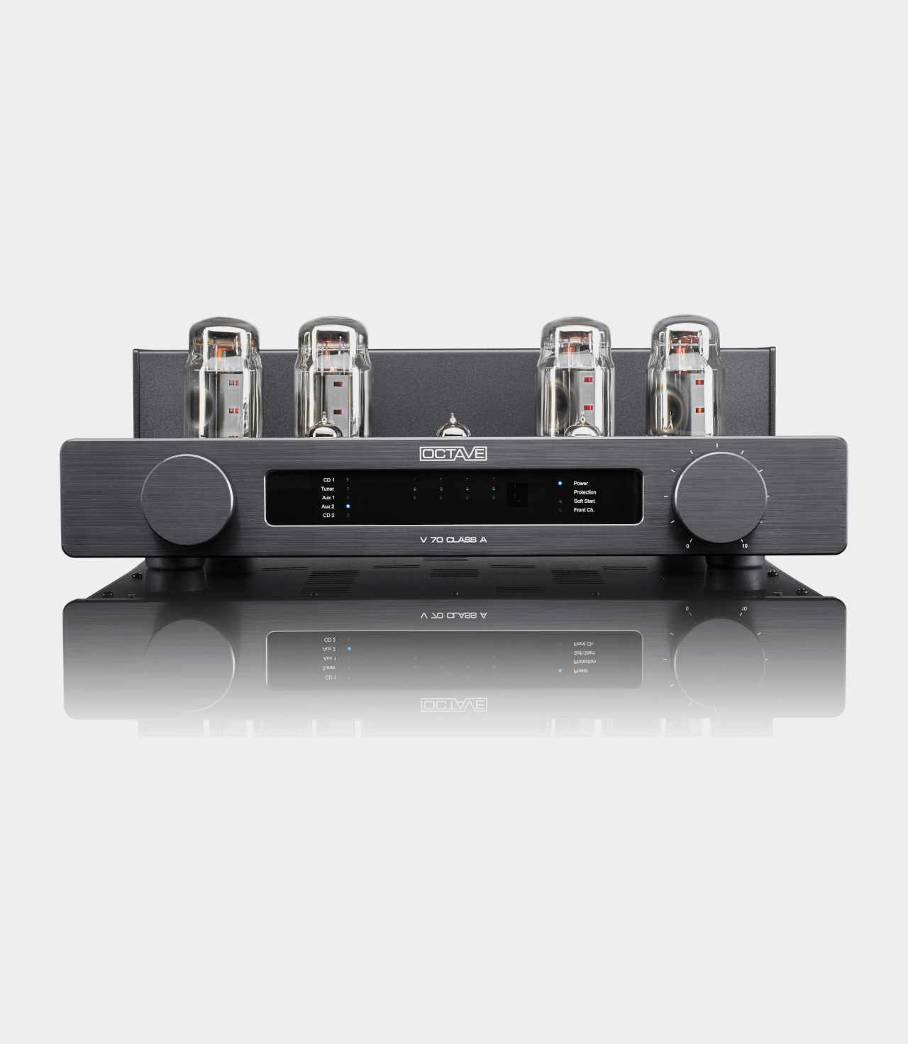 Integrovaný stereofonní elektronkový zesilovač, pracující ve třídě A s konceptem push-pull v pentodovém zapojení. Pojem „třída A“ technicky znamená vyšší nastavení klidového proudu a tudíž menší zkreslení, ale také omezená plná modulace při menším výkonu. Na druhou stranu koncepty push-pull mohou poskytovat 4 až 16krát vyšší výstupní výkon ve srovnání s třídou A, ale naopak trpí neharmonickým zkreslením. Každé z těchto řešení má tedy své výhody i nevýhody a své přívržence i odpůrce. Hlavní konstruktér Octave Andreas Hofmann byl samozřejmě v pokušení spojit oba koncepty do něčeho nového. Po dlouhém a nelehkém vývoji vznikl zcela nový koncept zesilovače – Octave V70 Class A. Díky tomuto řešení může tento zesilovač nabídnout špičkový výkon až 70W, na třídu A neobvykle vysoký. Zesilovač je vybaven vstupem pro přenosky typu MM nebo MC.