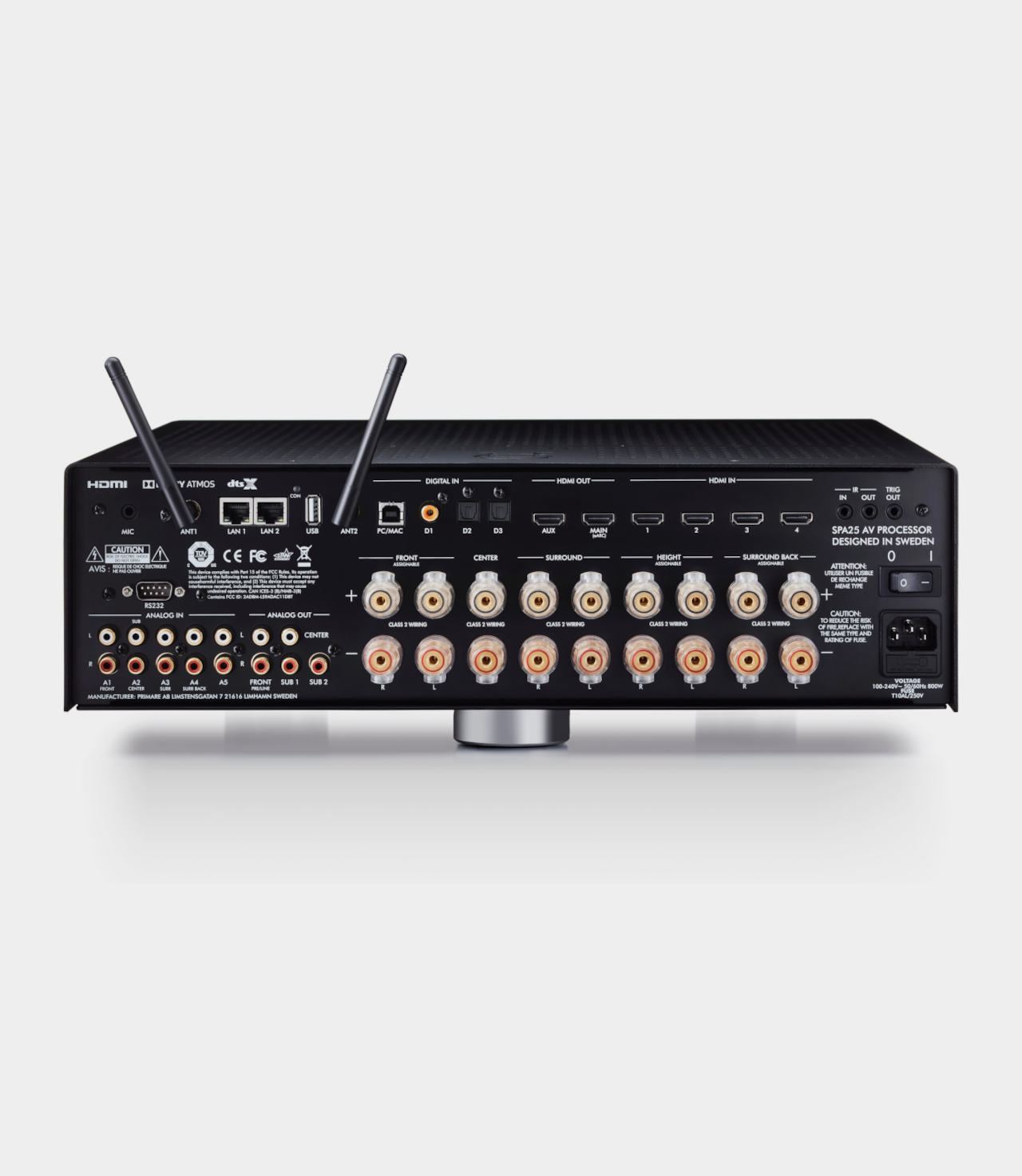SPA25 Prisma je vícekanálový procesor a zesilovač, určený pro kinofily i audiofily, nabízející pečlivě promyšlené a propracované funkce a vlastnosti, aby poskytl co nejlepší zážitek z domácího kina co nejširšímu publiku. Pro kinofily obsahuje SPA25 Prisma devítikanálový zesilovač s maximálním celkovým výstupním výkonem 900 W, 4K HDR, eARC, Dirac Live a jedenáctikanálové zpracování Dolby Atmos/DTS X, které s přidáním stereofonního výkonového zesilovače umožňuje konfiguraci kina 7.1.4. Pro audiofily využívá SPA25 Prisma dva osmikanálové D/A převodníky s čipem ES9026PR0, které umožňují dosáhnout kvalitního zvuku. Tento unikátní obvod digitálně-analogové konverze přiděluje čtyři kanály na přední levý a čtyři na pravý přední kanál, to vše pro pro lepší stereofonní výkon.