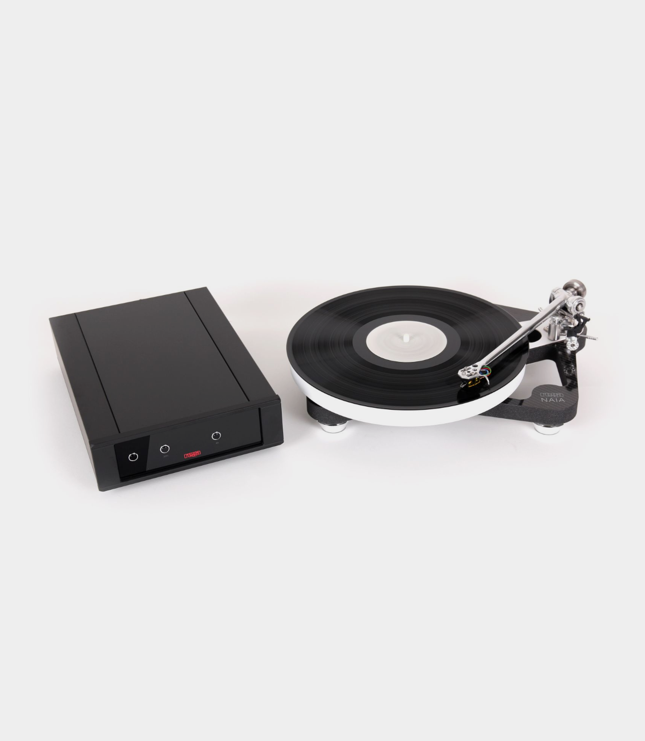 Referenční napájecí zdroj NAIA nabízí maximální stabilitu řízení motoru, pohodlnou elektronickou změnu otáček, pokročilou kontrolu vibrací a uživatelsky nastavitelné elektronické jemné nastavení otáček, které zajišťuje naprostou přesnost a kontrolu po celou dobu životnosti motoru. Referenční napájecí zdroj, umístěný v nejnovějším šasi navrženém na míru, je určen pro co nejtišší a nejpřesnější provoz firemního 24V motoru s nízkou hladinou hluku. Rychlosti a řízení motoru je dosaženo pomocí generátoru DSP (Digital Signal Processing) postaveného na krystalu s vysokou stabilitou. Toto zařízení rozdělí přesnou vlnu z krystalu na přesnou frekvenci potřebnou k otáčení talíře zvolenou rychlostí. Jádro DSP rovněž vygeneruje téměř dokonalý sinusový průběh pro napájení motoru. Továrně nastavené odstranění vibrací a jemné nastavení rychlosti se pak provede na napájecím zdroji, aby se každý motor vyladil pro optimální výkon.