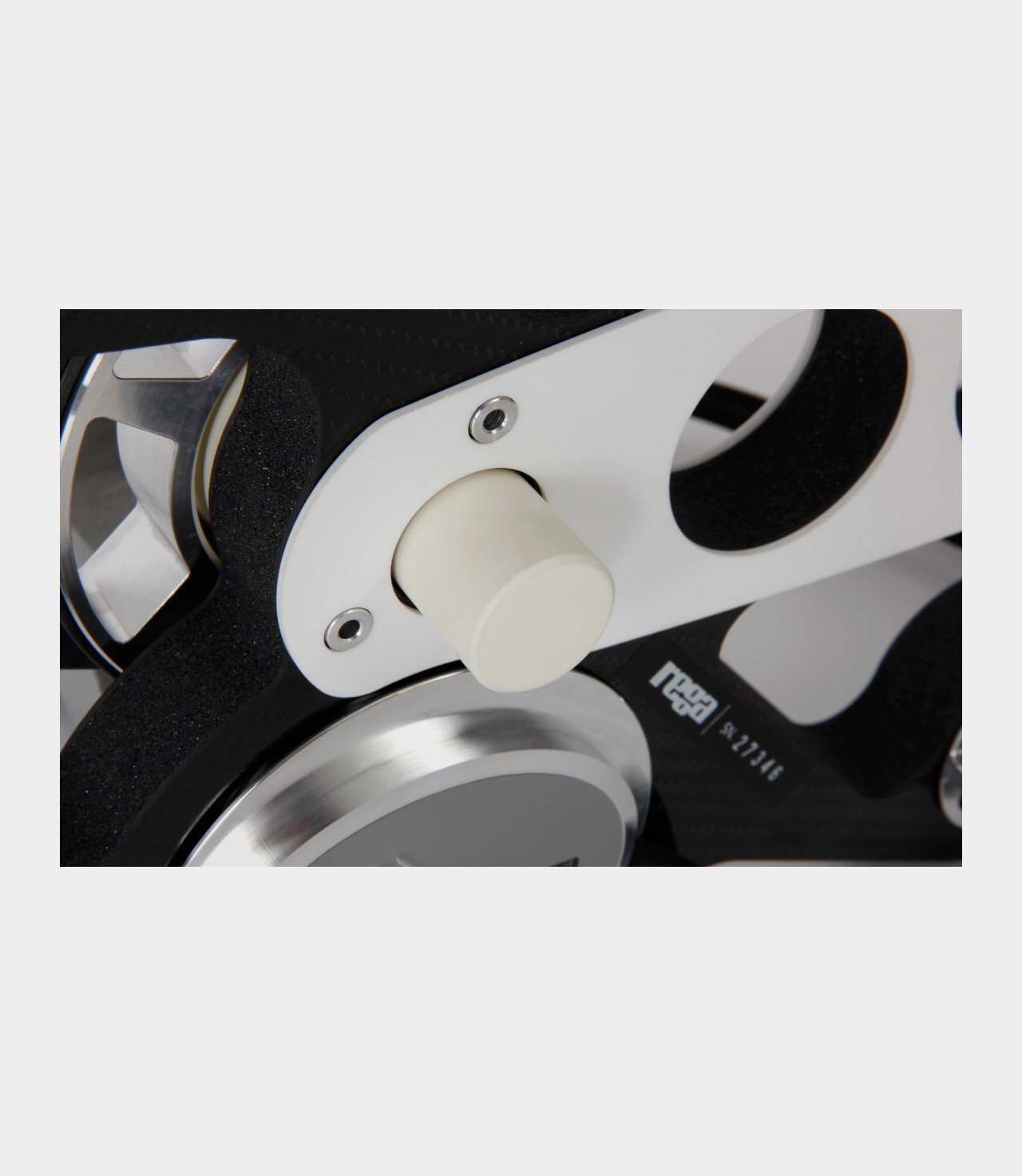 „Hmotnost pohlcuje energii – ztracená energie se rovná ztracené hudbě“! Velmi lehké šasi v kombinaci s keramickou horní a spodní výztuhou namontovanou speciálně v místech, kde je vyžadována zvýšená tuhost mezi uchycením raménka a hlavním ložiskem náboje. To vytváří konstrukčně pevnou sestavu „napjatého nosníku“. Tato tuhá konstrukce podstavce zabraňuje absorpci energie a nežádoucím rezonancím, které by do hudby vnášely nepřirozené zkreslení. Stejně tak může těžší hmota přenášet více nežádoucí energie, jako je hluk motoru nebo ložiska, přímo do rotující desky. Raménko a přenoska musí být schopny přesně snímat přímo z talíře. Toto jedinečné řešení Rega s dvojitou výztuhou zaručuje, že z vinylů bude získáno co nejvíce detailů. Použití výztuh namísto jednolitého materiálu umožňuje zvýšit tloušťku v těchto klíčových oblastech a zároveň poskytuje další snížení hmotnosti podstavce, což přímo řeší problém pohlcování hmoty a přenosu nežádoucí energie.