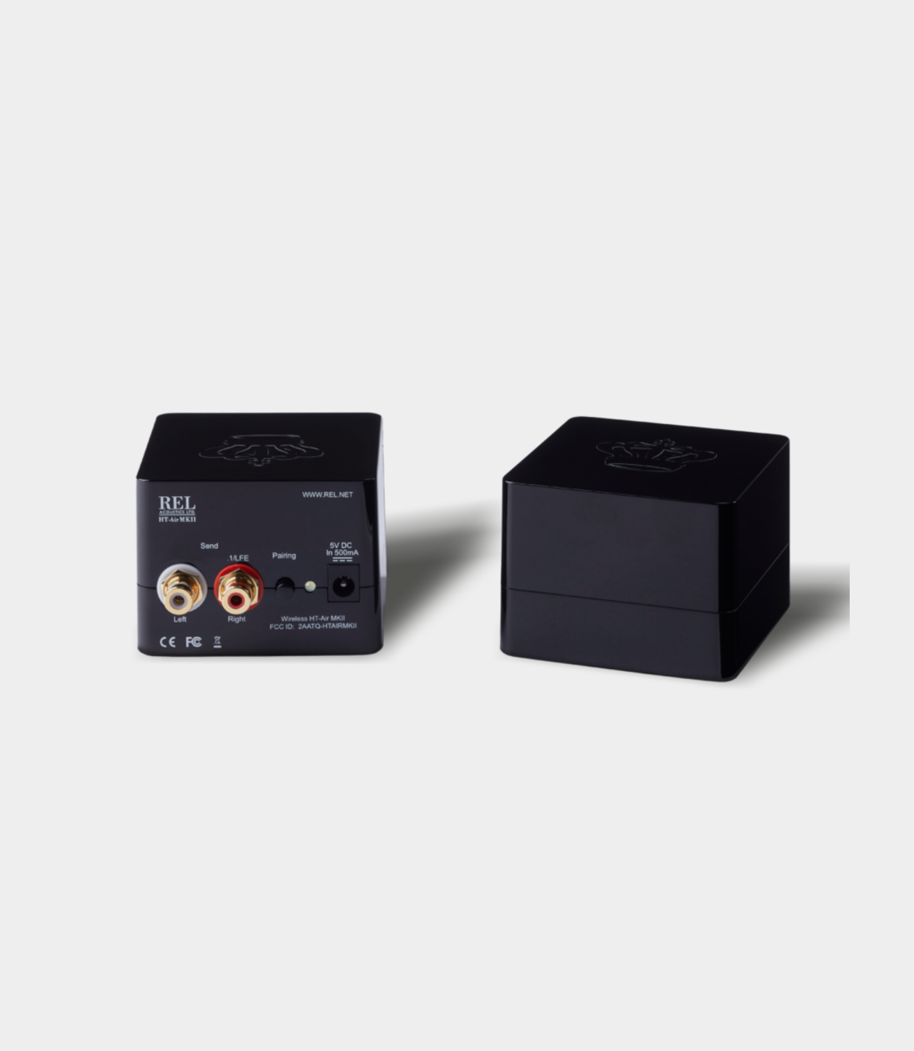 Sada vysílače a přijímače pro bezdrátový přenos signálu do aktivních subwooferů REL řady HT. HT-Air MKII využívá firemní 5,8 GHz čip 3. generace, nejpokročilejší jednočipové řešení REL. Je navržen tak, aby umožňoval nepřetržité streamování hudby a filmů v reálném čase. Díky stereofonním vstupům nebo vstupu LFE je zařízení HT-Air MKII snadno schopno vysílat dynamické, bohatě znějící subbasové signály na vzdálenost nejméně 12 m a v ideálních případech i dále. Stejně jako dražší bezdrátové řešení od REL poskytuje bleskurychlou odezvu kolem 17 ms. Tato rychlost se promítá do lepšího zvuku, větší dynamiky a výkonu blížícího se kvalitním kabelům. HT-Air MKII je zabudován do litého akrylátového šasi, které již na první pohled dává najevo svou kvalitu.