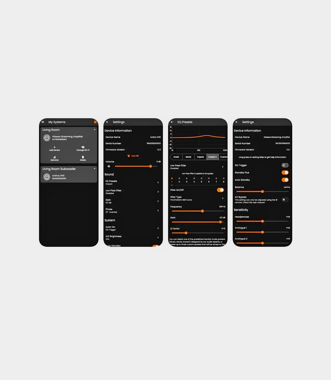 Předzesilovač Caspian 4G Streaming je řídícím centrem každého systému Caspian. Díky integrovanému systému BluOS poskytuje prémiové streamování až do rozlišení 24 bitů/192 kHz v až 64 zónách. BluOS také umožňuje snadné procházení a okamžitý přístup k lokálně uložené hudbě i předním streamovacím a rozhlasovým službám. Ve spojení s výkonovým zesilovačem Caspian 4G Power Amplifier je výsledkem výjimečné rozlišení, rozsah a muzikálnost, které umožňují plně vyniknout charakteru každého hudebního žánru. Co se konektivity týká, uspokojí tento předzesilovač všechny uživatele. Digitální i analogové vstupy, včetně vstupu pro gramofon s MM i MC přenoskami, HDMI eARC pro spojení s televizorem, USB pro vaše úložiště a bluetooth pro bezdrátový přenos hudby.