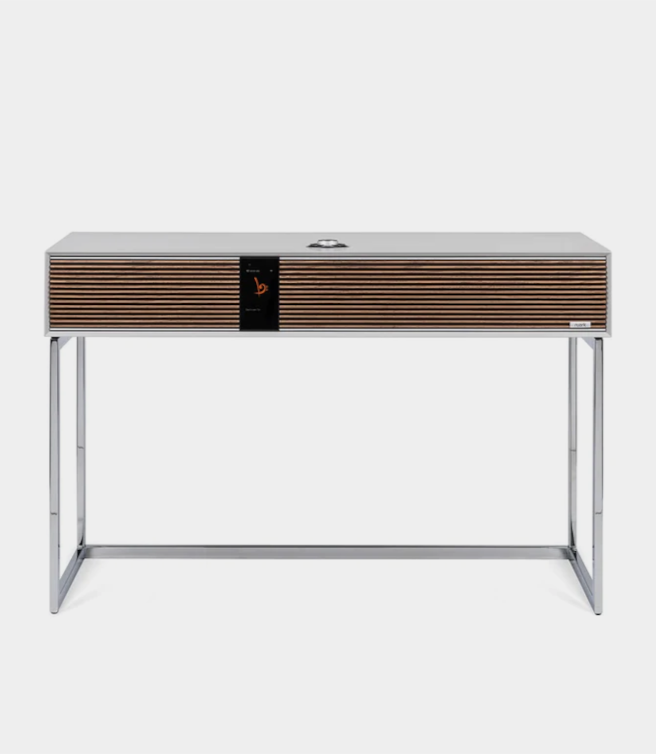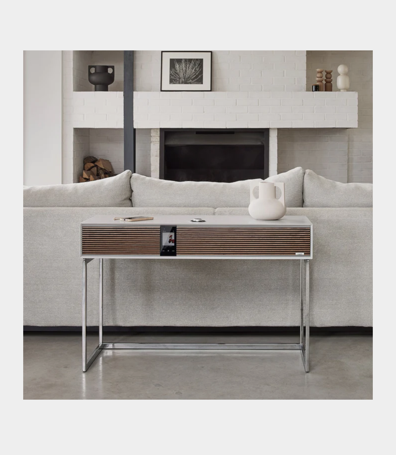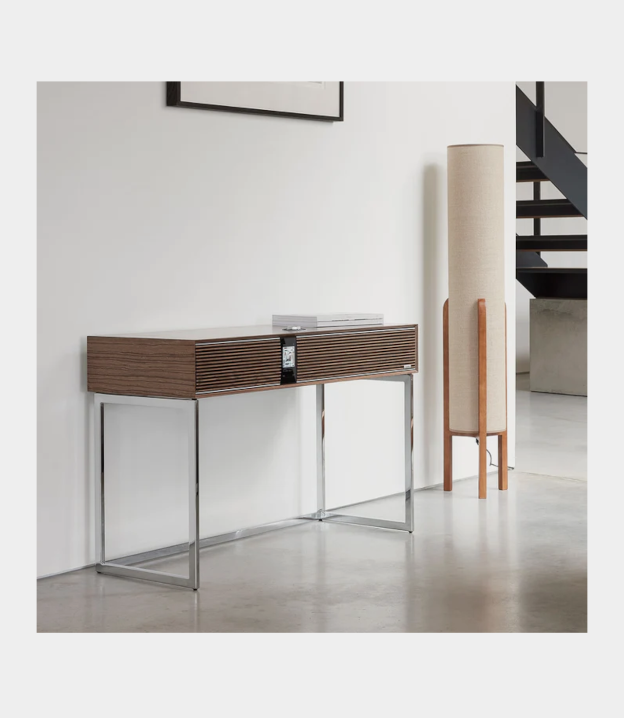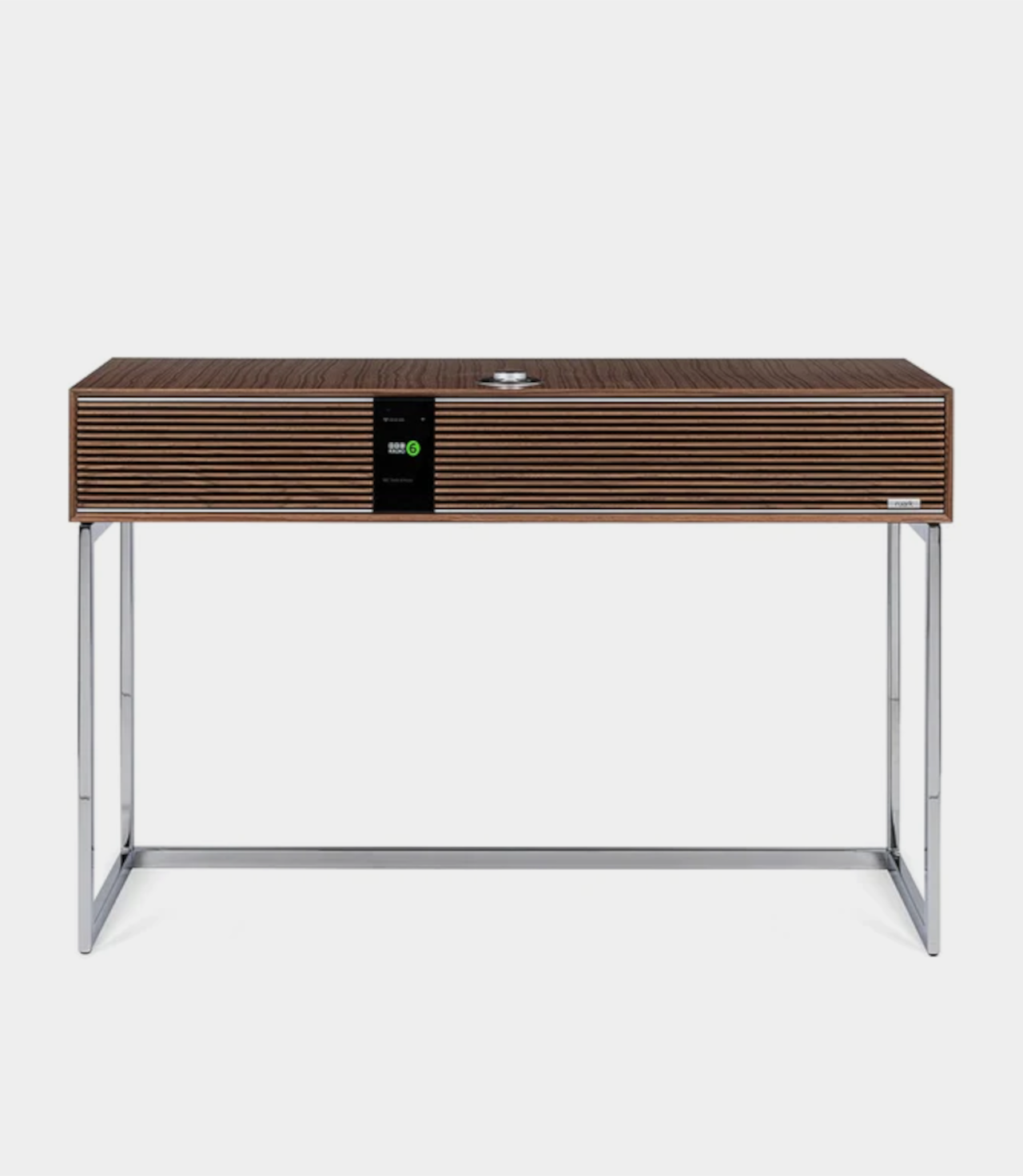 Stejně jako ikonické radiogramy minulých let je i R810 produktem, který byl navržen tak, aby byl vidět. Estetiku modelu R810 umocňuje speciální materiál, který byl zvolen pro ručně vyráběnou mřížku a dýhované skříňky. Je vyroben z udržitelných dřevin, které jsou spojovány a rekonstituovány, takže výsledná kresba vláken věrně připomíná pomalu rostoucí tvrdé dřevo, ale bez ekologického dopadu. V kombinaci s precizně tvarovanými lištami a leštěným chromovaným stojanem vyzařuje R810 sofistikovanost a stejně jako ten nejlepší nábytek je předmětem, kterého si budete vážit a na který budete pyšní, že ho máte vystavený ve svém domě.