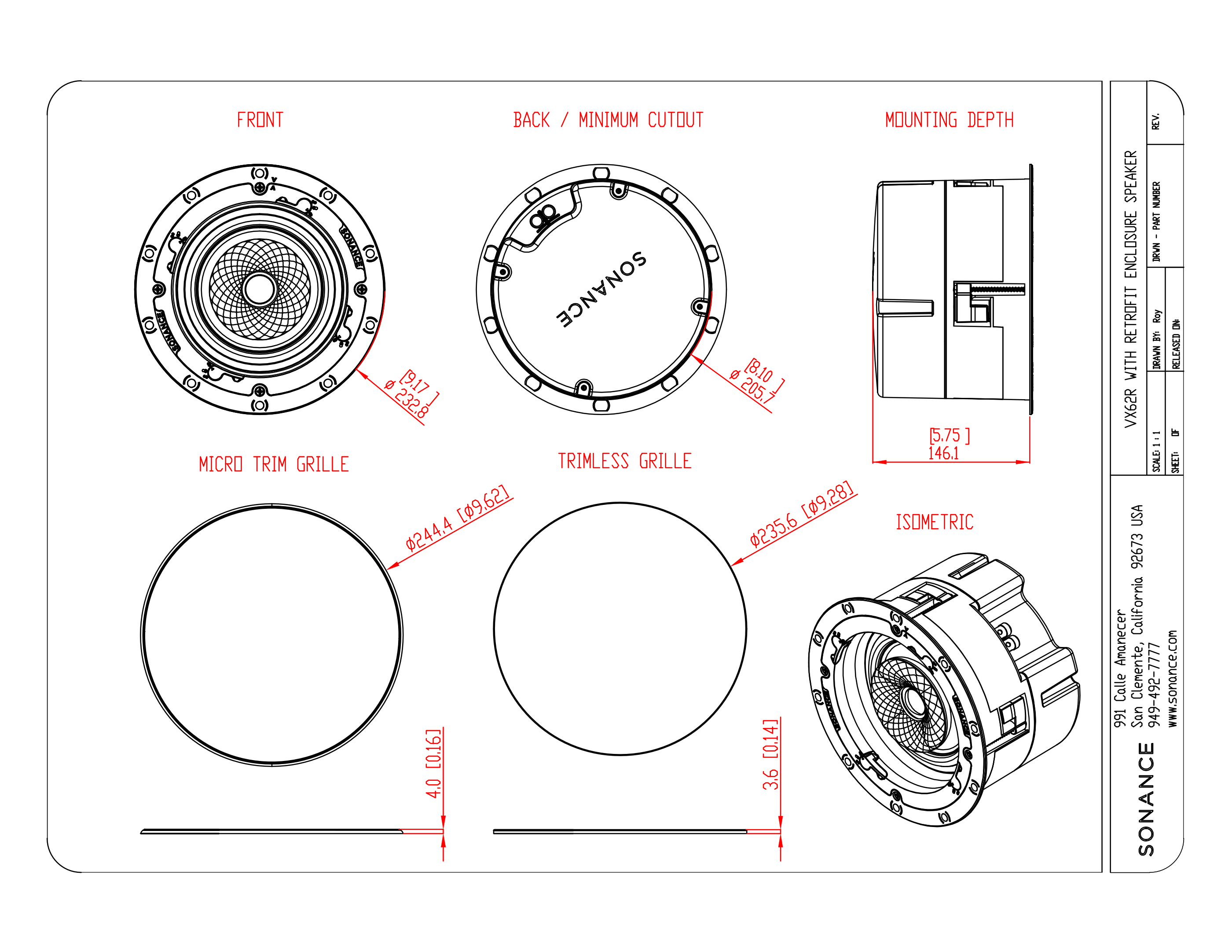 Pasivní instalační reproduktor ze série Sonance Visual Experience, určený pro malé, střední, ale i velké prostory, ve kterých je prioritou spojení elegantního a moderního stylu s nekompromisním zvukovým výkonem. Model Sonance VX62R disponuje jedním 25 mm výškovým měničem s látkovou kupolí chlazenou ferrofluidem a jedním 165 mm basovým měničem s texturovanou polypropylenovou membránou. Reproduktor umožňuje souběžné otáčení výškového a basového měniče pro co nejlepší nasměrování zvuku. Flexibilitu při instalaci zabezpečuje klasický jednostupňový mechanismus s upínači Roto-Lock nebo nový dvoustupňový mechanismus Flex Frame, který zajišťuje efektivitu při rozsáhlých projektech. Bílá lakovatelná mřížka s ultratenkým rámečkem Micro Trim.