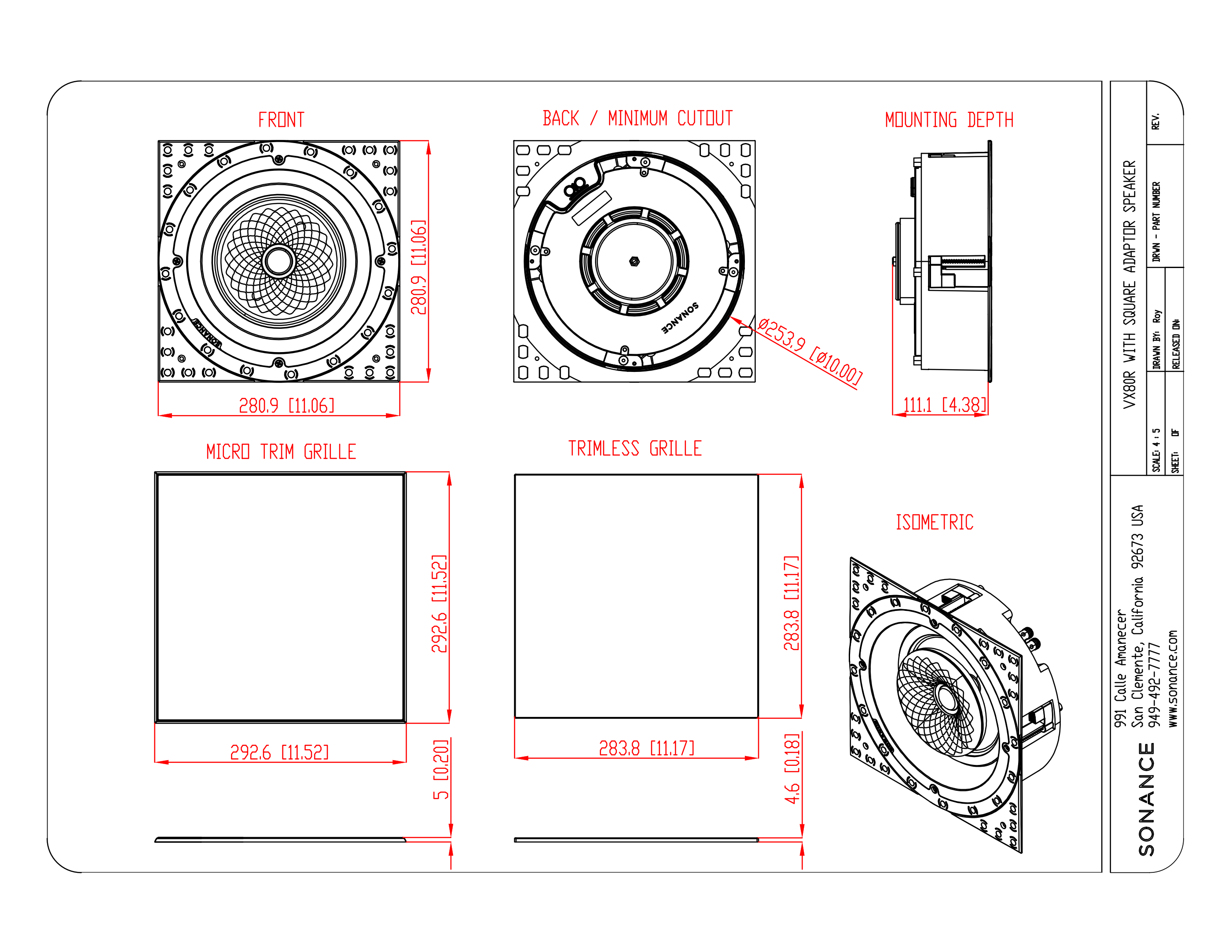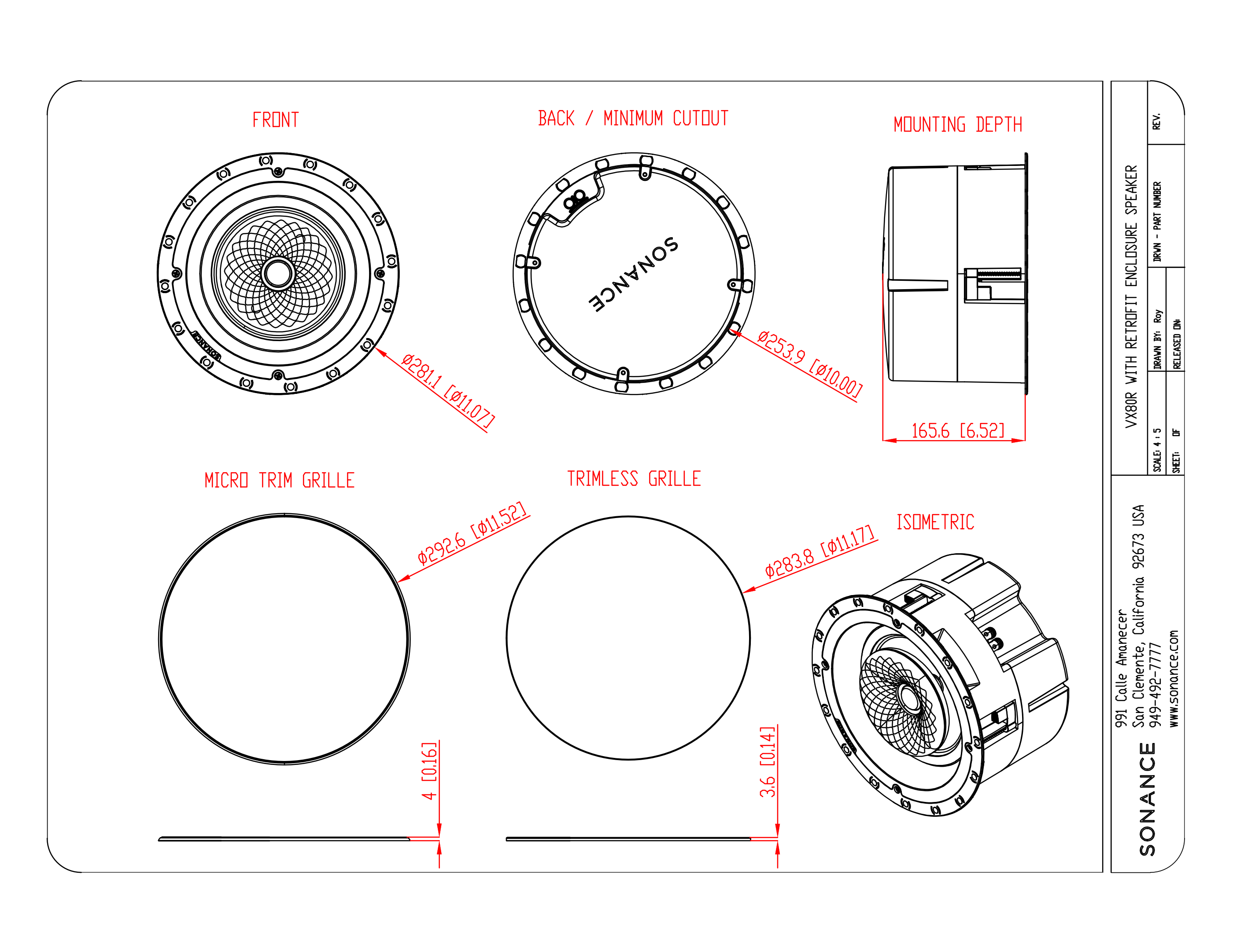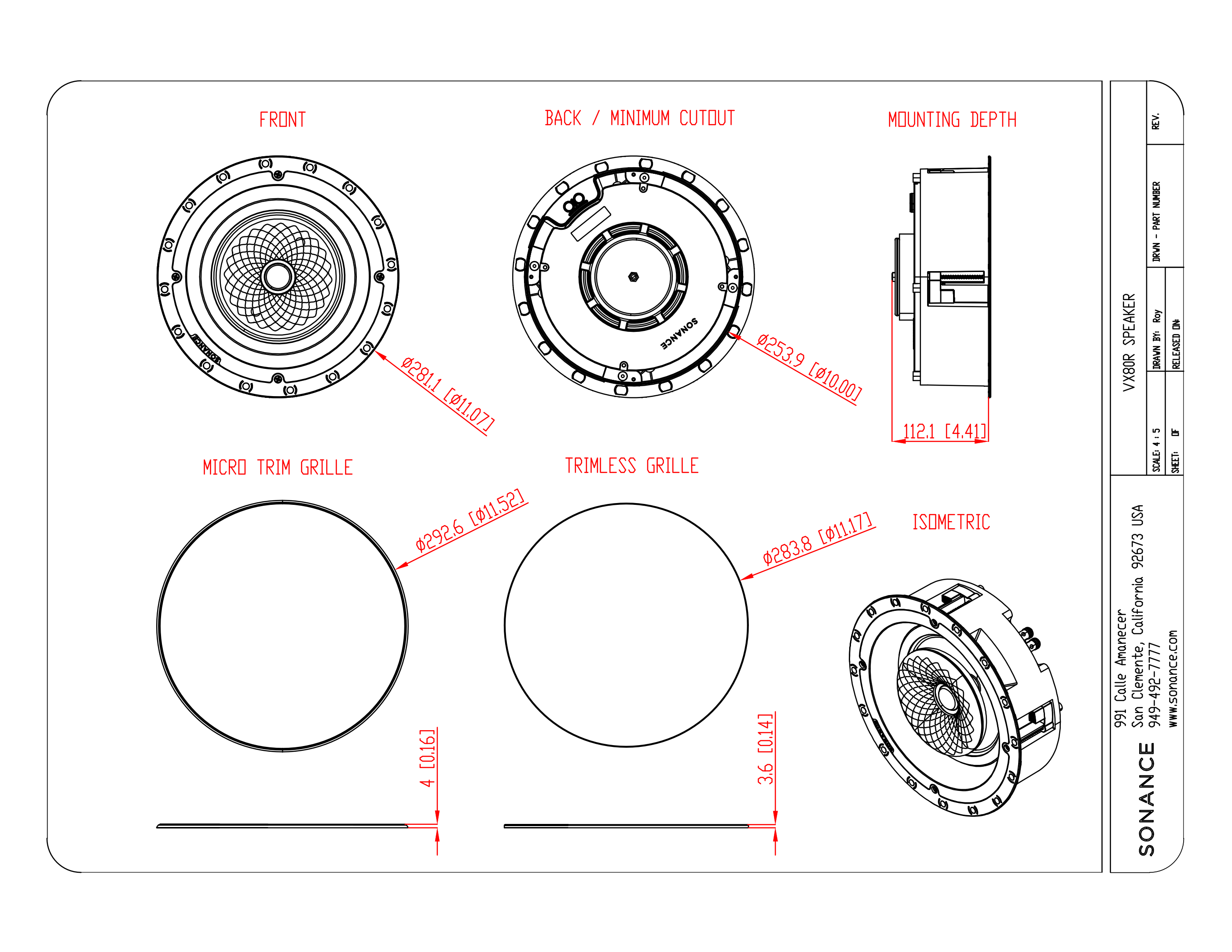 Pasivní instalační reproduktor ze série Sonance Visual Experience, určený pro středně velké a velké prostory, ve kterých je prioritou spojení elegantního a moderního stylu s nekompromisním zvukovým výkonem. Model Sonance VX80R disponuje jedním 30 mm výškovým měničem s látkovou kupolí chlazenou ferrofluidem a jedním 203 mm basovým měničem s texturovanou polypropylenovou membránou. Flexibilitu při instalaci zabezpečuje klasický jednostupňový mechanismus s upínači Roto-Lock. Bílá lakovatelná mřížka s ultratenkým rámečkem Micro Trim.