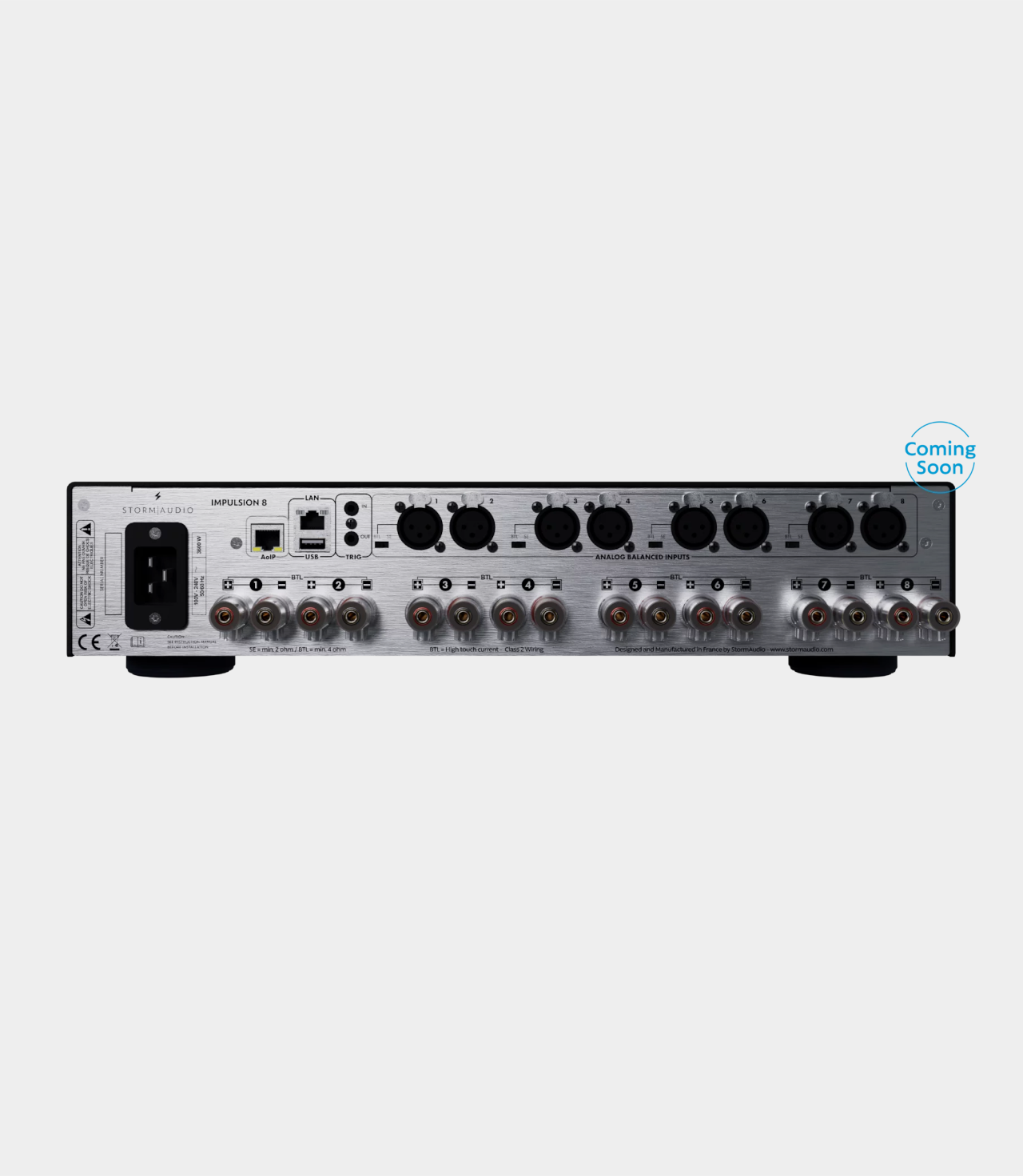 Impulsion 8 je kompaktní vysoce výkonný vícekanálový zesilovač o výšce 2RU (při instalaci do racku), který kombinuje pokročilé zesílení třídy D, nativní digitální rozhraní kompatibilní s AES67/Dante a integrovaný DSP pro pokročilé řízení reproduktorů. Díky výkonu až 800W na kanál a plnému monitorování přes IP nabízí výjimečný výkon a flexibilitu pro špičková domácí kina a studia. Impulsion 8, navržený pro poskytování vysoce výkonného zvuku s přesností, stabilitou a plnou kontrolou, je inteligentní volbou zesilovače pro dnešní nejnáročnější instalace domácích kin a studií.