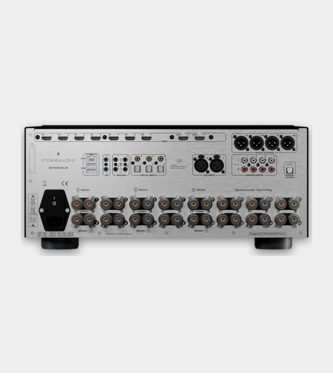 ISR Fusion 20 má pevnou architekturu, avšak s možností upgradu HDMI desky, pro případ že kdykoli v budoucnu dojde ke změnám v této oblasti. V současné době podporuje HDMI2.1a/HDCP2.3 až do 8K/4K120 s HDR10+, HLG a Dolby Vision a také ARC/eARC. Tento zesilovač lze snadno ovládat různými nástroji, od přiloženého infračerveného dálkového ovladače až po systémy domácí automatizace nebo aplikaci Android/iOS dostupnou v chytrých telefonech nebo tabletech. Krédem StormAudio je navrhovat vysoce výkonné produkty, které se snadno používají a zákazník je snadno nastaví; ISR Fusion 20 není výjimkou, je vybaven intuitivním uživatelským rozhraním StormAudio a uživatelsky přívětivým konfigurátorem reproduktorů.