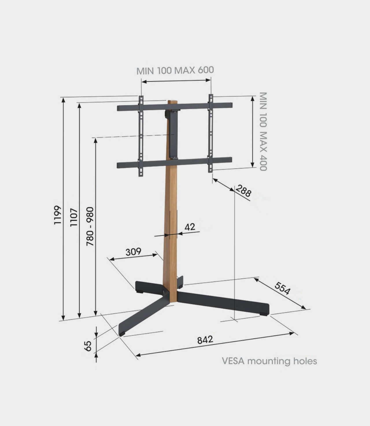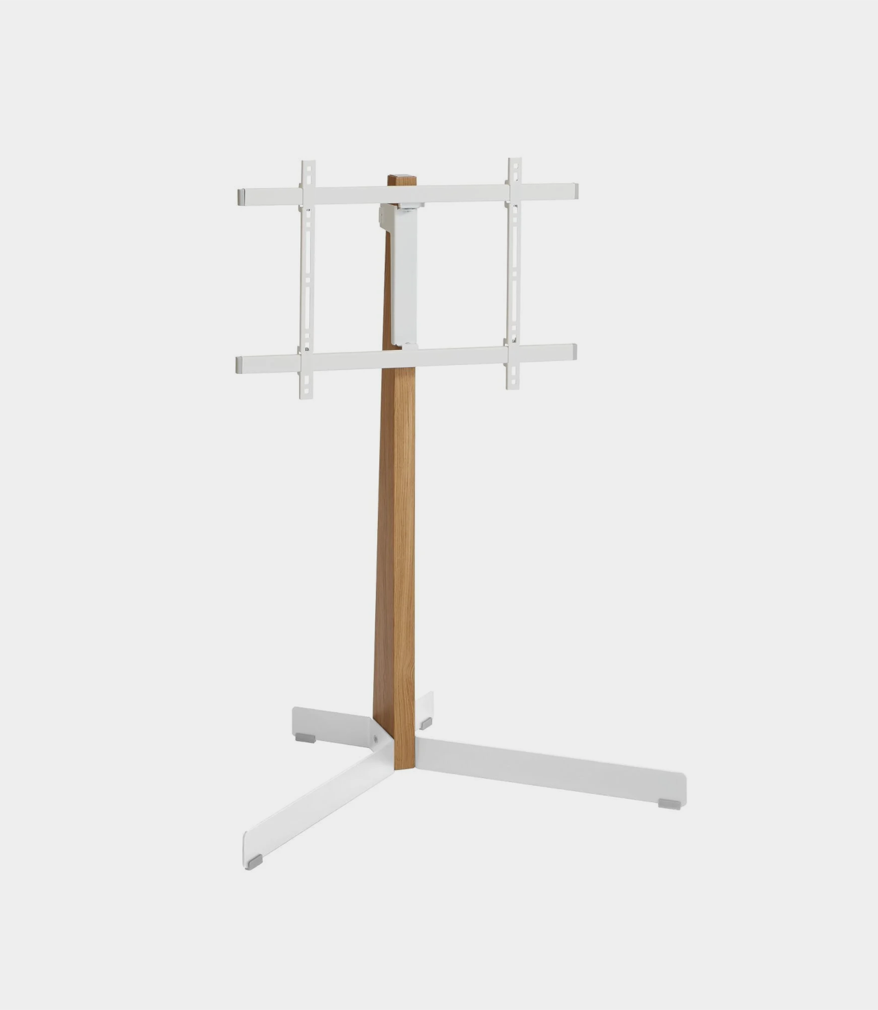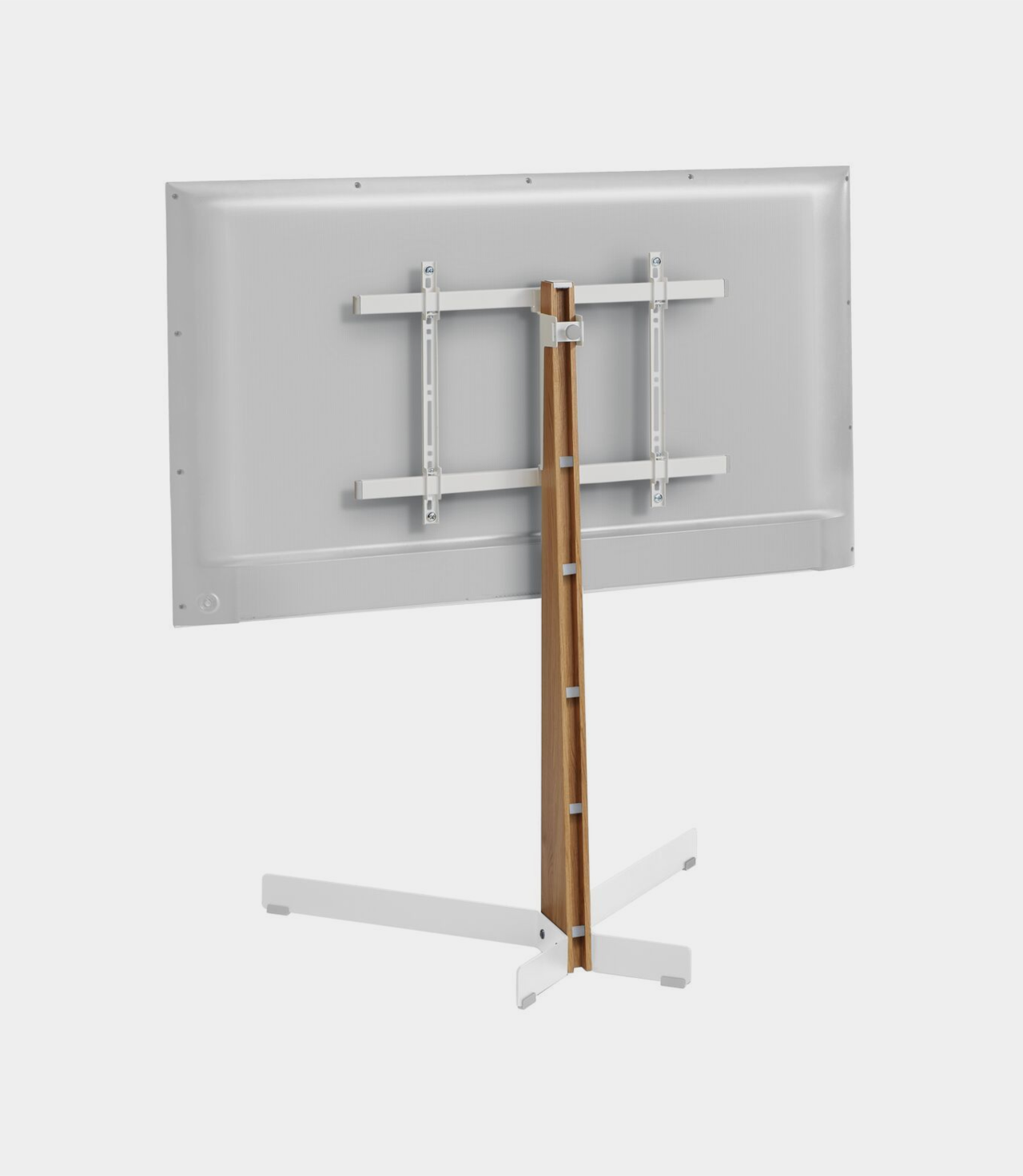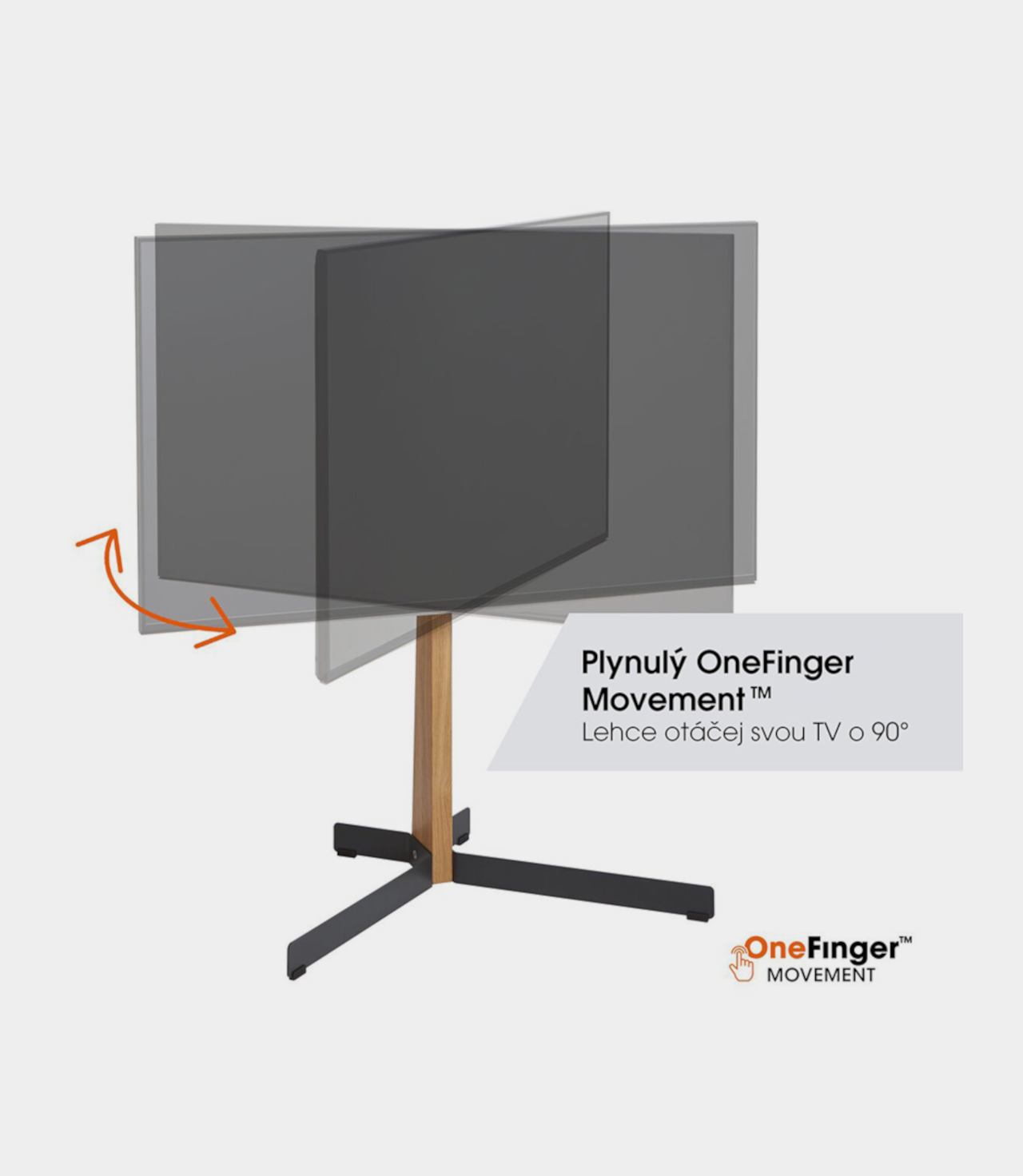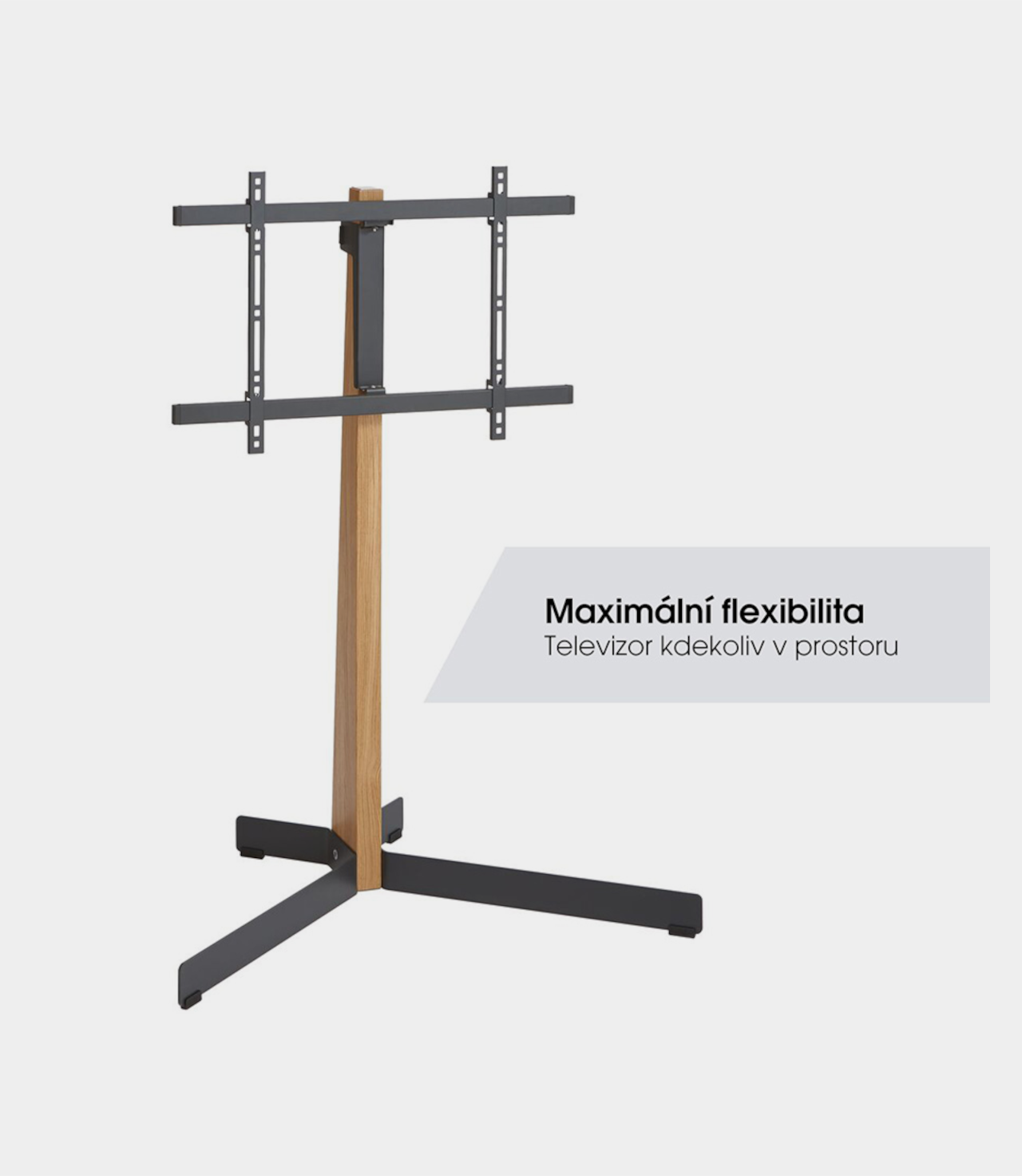 Designový stojan pro televizory s úhlopříčkou 40″ – 77″ a hmotnost až 50kg. TVS 3695 představuje stojan s nejlepší z funkcionalitou. Je ideální pro televizory s velkou obrazovkou a výškově nastavitelný až o 20cm, televizor lze také snadno otočit až o 90 stupňů díky řešení OneFinger Movement. Usnadněte si přístup ke kabelům a jejich správu díky vyhrazenému zadnímu prostoru pro skryté vedení kabelů. K podlahovému stojanu TVS 3695 navíc snadno připojíte i svůj soundbar, a to díky volitelnému držáku SOUND 3550. Soundbar se pak natáčí zároveň s televizorem. Stojan je vyroben z prémiového dubového dřeva a oceli. Uchycení pro standard VESA 100×100 – 600×400.